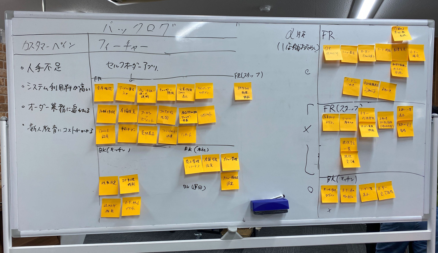CEOの佐々木さんを中心に新サービスの案を出し、最終的にはリストアップしたものだけで30弱の案がありました。その中から投票を行い多数決でセルフオーダーアプリに決定しました。