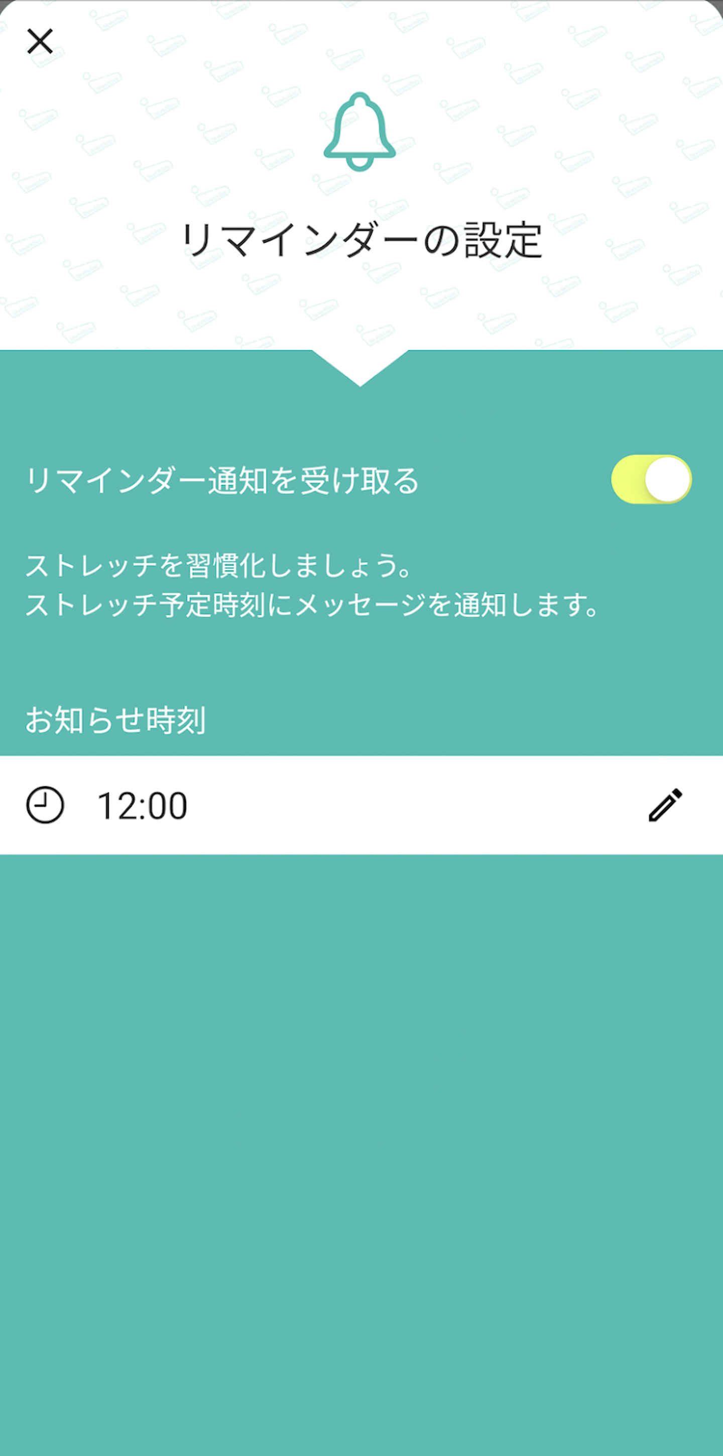 また、リマインダー機能もついており、ストレッチの行う時間を知らせてくれます。