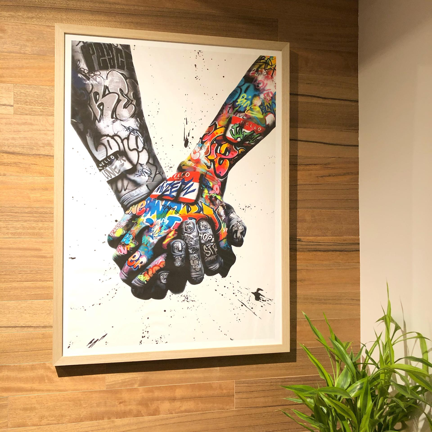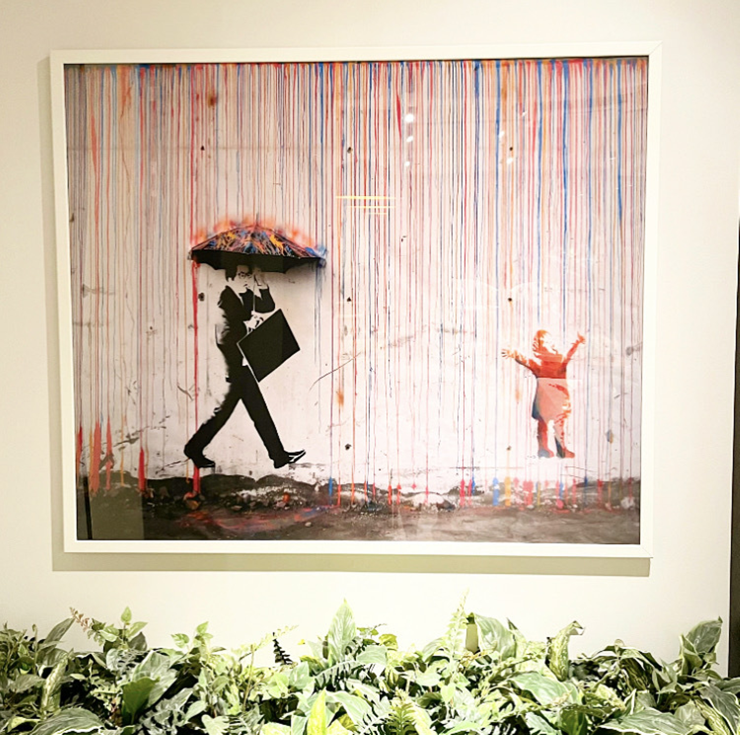 今まで寂しい感じがしていたオフィスの壁も、絵を飾ることでとても華やかになり、彩りもおしゃれ度もアップしたように感じます。