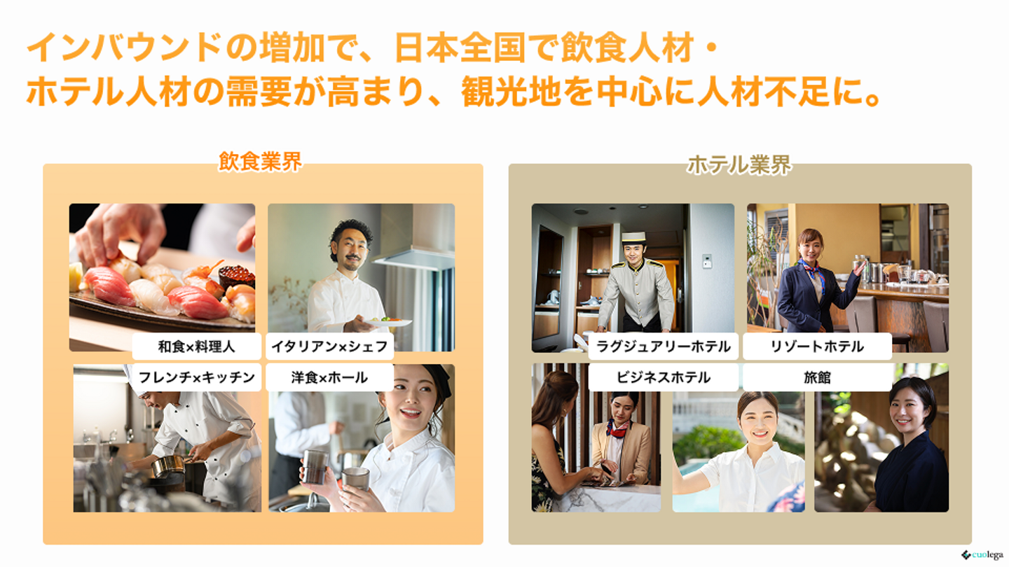 田口:1つは、「インバウンド復活×市場・タイミング」です。新規事業としてやることを決意したのは、2023年でした。外国人の入国規制が2022年の後半から緩和され、2023年にインバウンドが急回復、そして今後のリバウンドも考えたら、ホテルの需要が急激に伸びるのは明らかで、当然ホテル人材の需要が高まりますので、タイミング的にベストかなと判断しました。