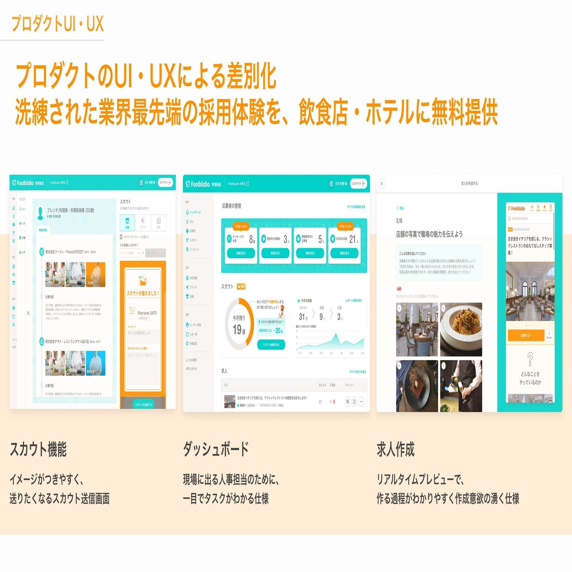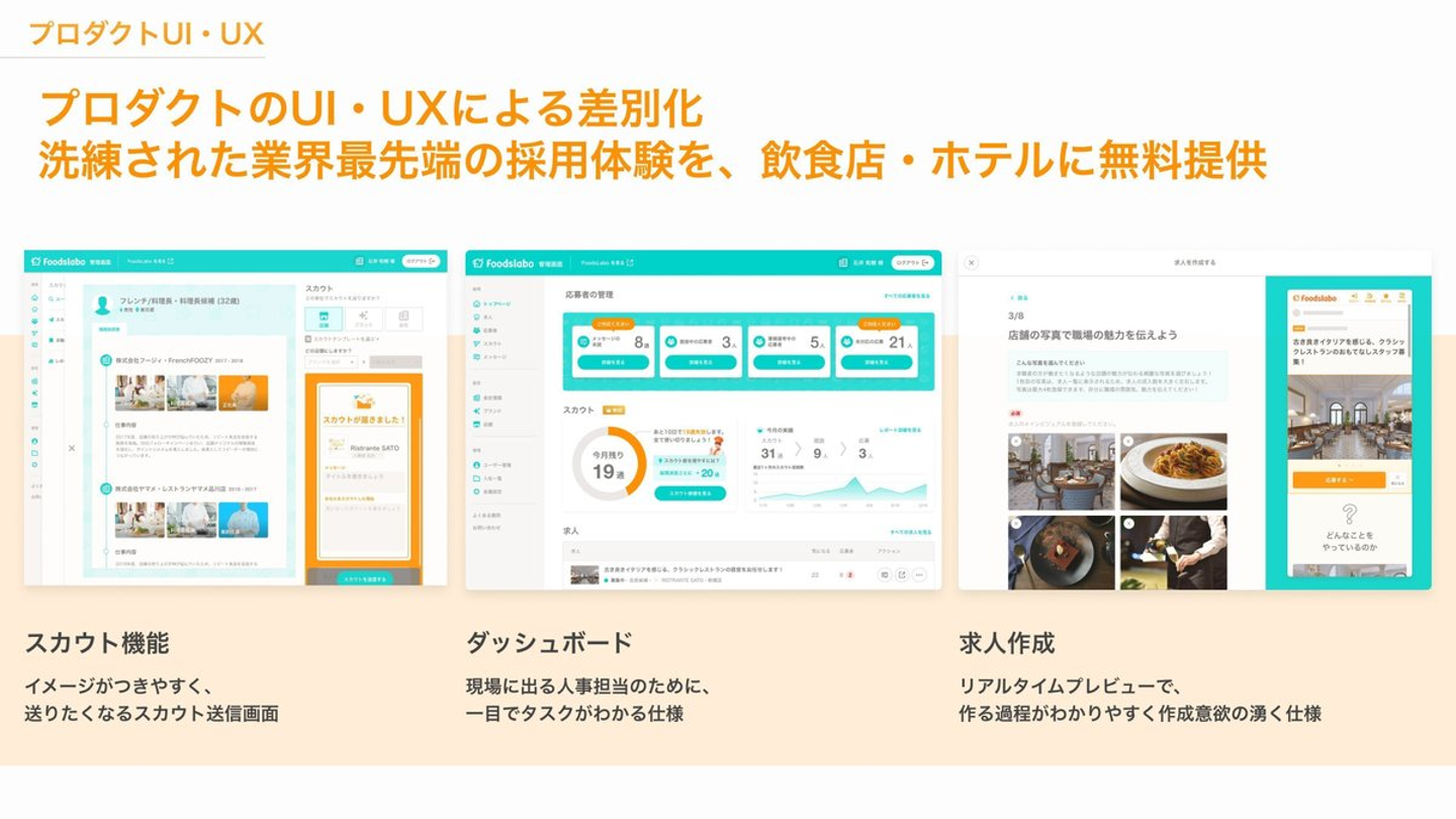 例えば、FoodsLaboやHotelsLaboでいえば、求職者様が良い求人に出会い、企業様が必要な人材を採用できる。そのゴールに到達するまでの一連の流れ全体が、UXなんです。