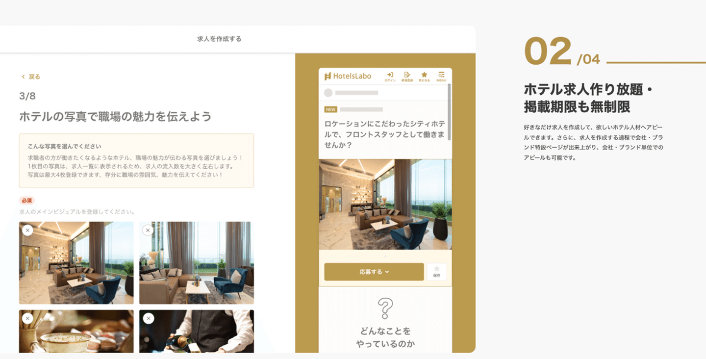 クオレガでは飲食人材特化の採用プラットフォーム「FoodsLabo」、ホテル人材特化の採用プラットフォーム「HotelsLabo」を運営しています。