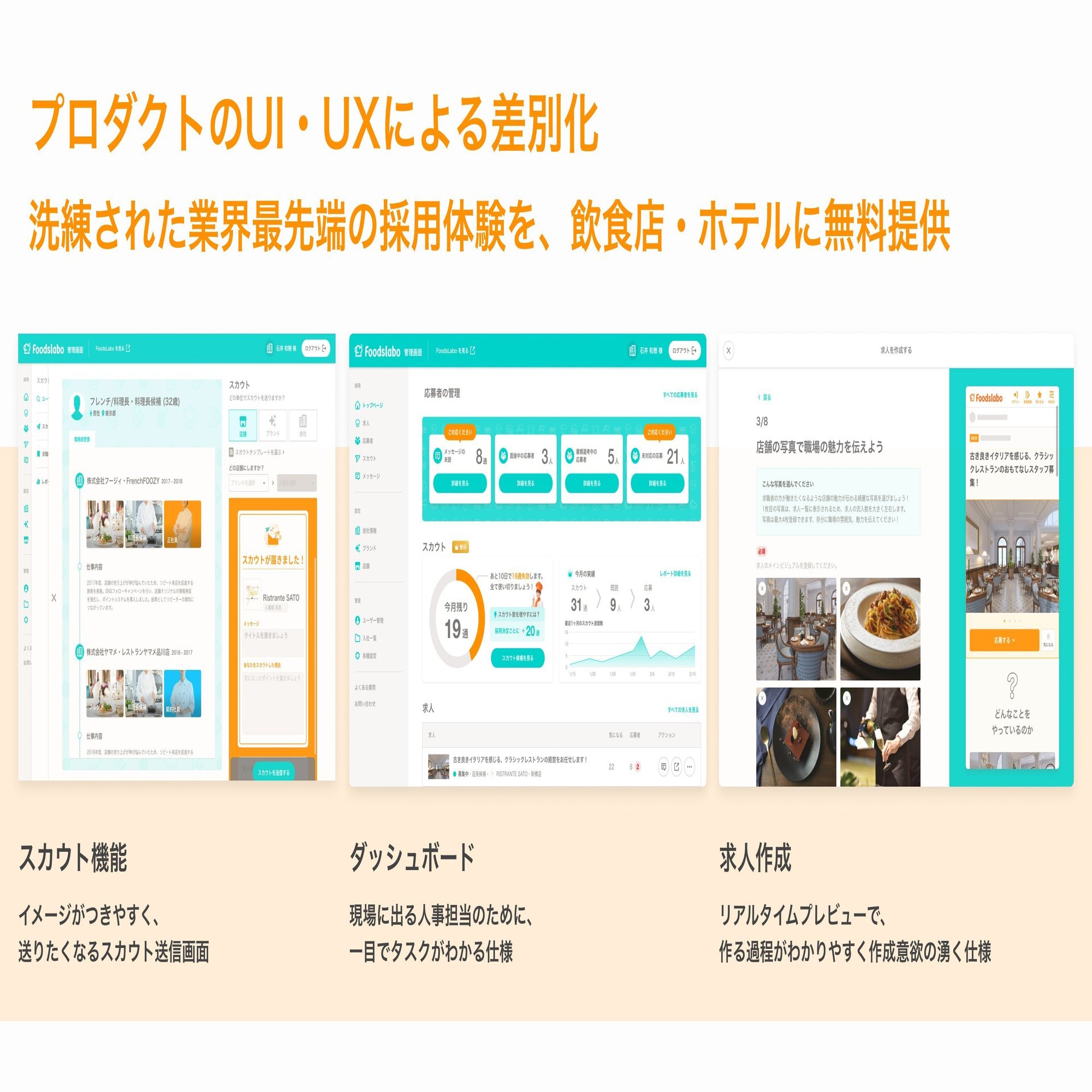 HotelsLaboやFoodsLaboのプロダクトは本当に優れていて、スカウトの反応率を見て「こんなに見てくれるんだ」と驚かれることも多かったです。