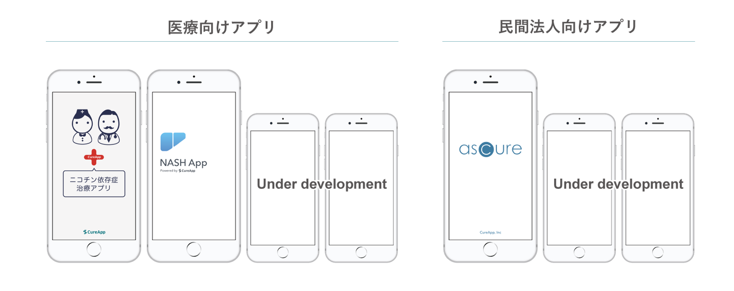 また、「治療アプリ®︎」開発で蓄積した知見を民間法人での健康増進にも活用頂けるよう、民間法人向け「モバイルヘルスプログラム」の展開も開始しました。現在提供している「ascure(アスキュア)禁煙プログラム」の他、生活習慣病やメンタルヘルス対策のプログラムも順次展開していく予定です。さらには、日本発のモバイルソリューションとして、海外への進出も進めています。
