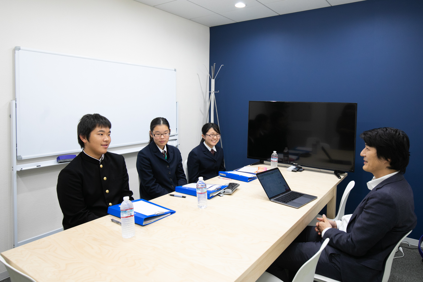 修学旅行で東京へいらしたタイミングで、弊社をご訪問してくださった生徒さんたちから、今後多くの人が医療格差なく、低コストでITを使用するには?などの様々な質問をいただき、代表の佐竹からお話をさせていただきました。