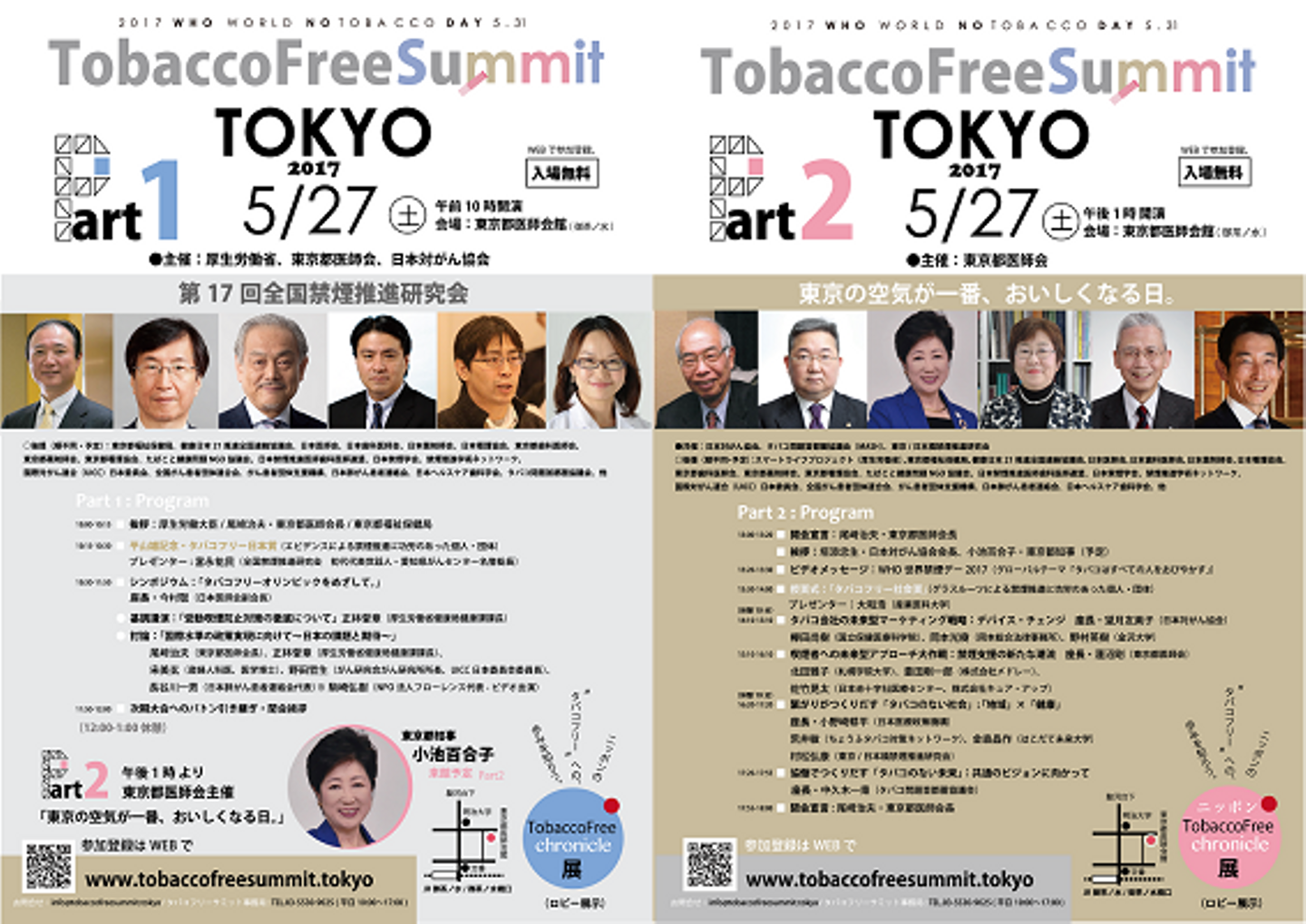 それに先駆け、5月27日に『Tobacco Free Summite TOKYO 2017』が開催されました(主催:厚生労働省、東京都医師会、日本対がん協会)