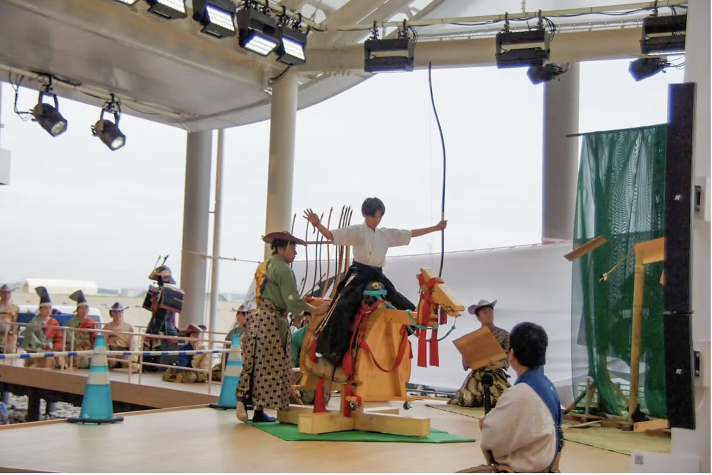 2025年6月7日、大阪・関西万博のポップアップステージ南にて、小笠原流による礼法と弓馬術を体験できる『武士の学校』を開催いたしました。