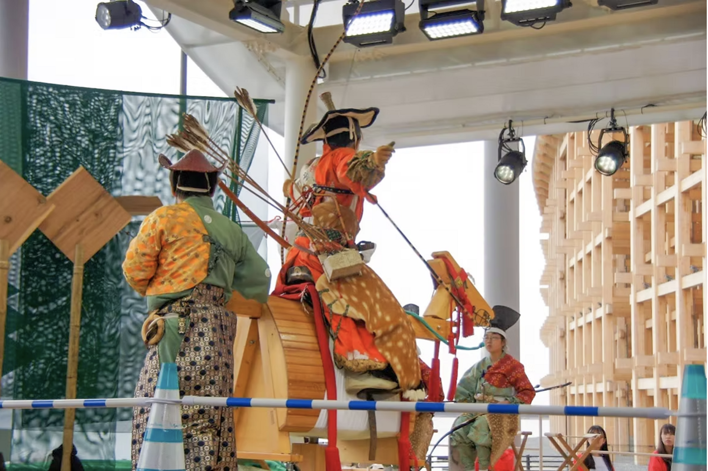 宮廷文化と融和し、武だけでなく礼を重んじた鎌倉期の背景から生まれた小笠原流。万博特別編では、流鏑馬の演武や武具の紹介を中心に、子どもから大人まで楽しめる工夫が随所に取り入れられています。