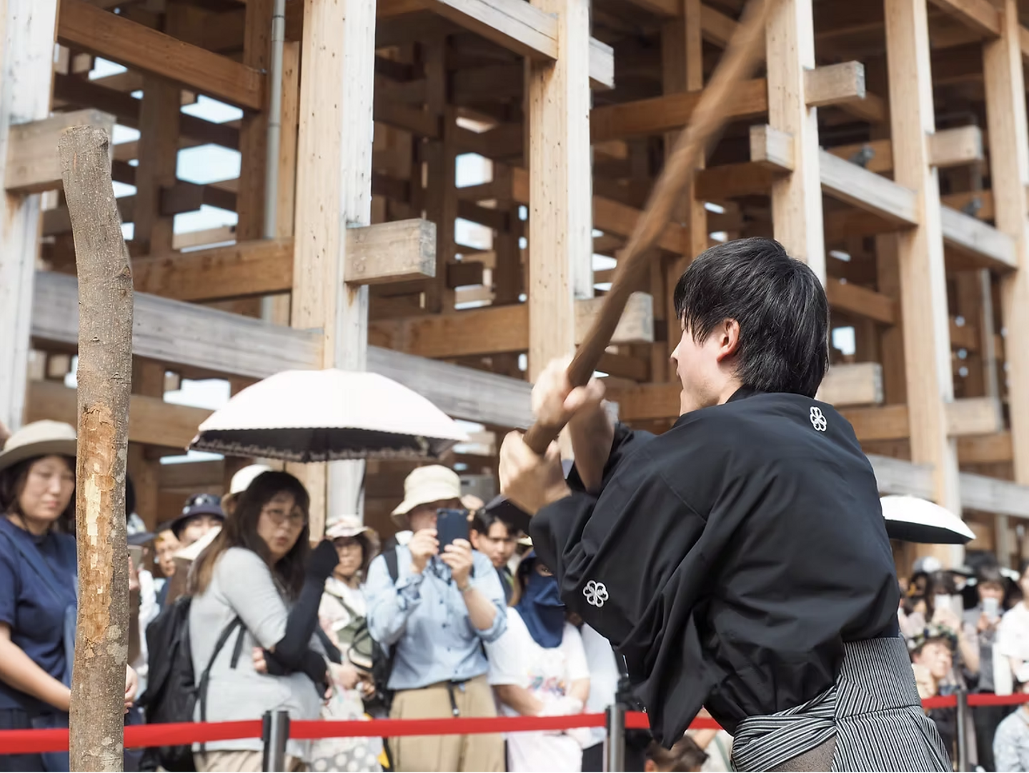示現流兵法の立木打稽古・あまりの気迫に会場がざわめく