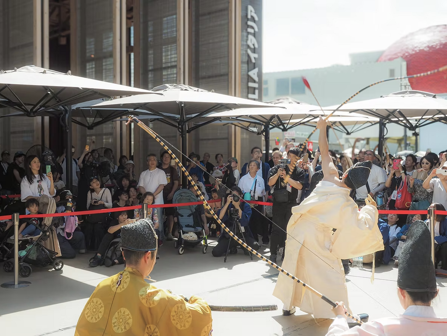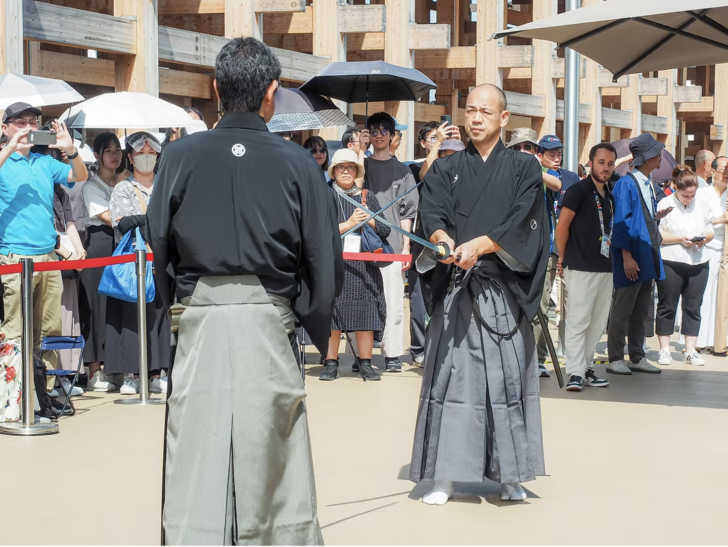 イタリア館前の広場では、「武士の学校」の“見る・知る・触れる”という目的が確かに共有され、日本の古武道の強靭さと優美さが響き合い、礼・美意識・身体知を海外来場者と次世代へと手渡す場となりました。