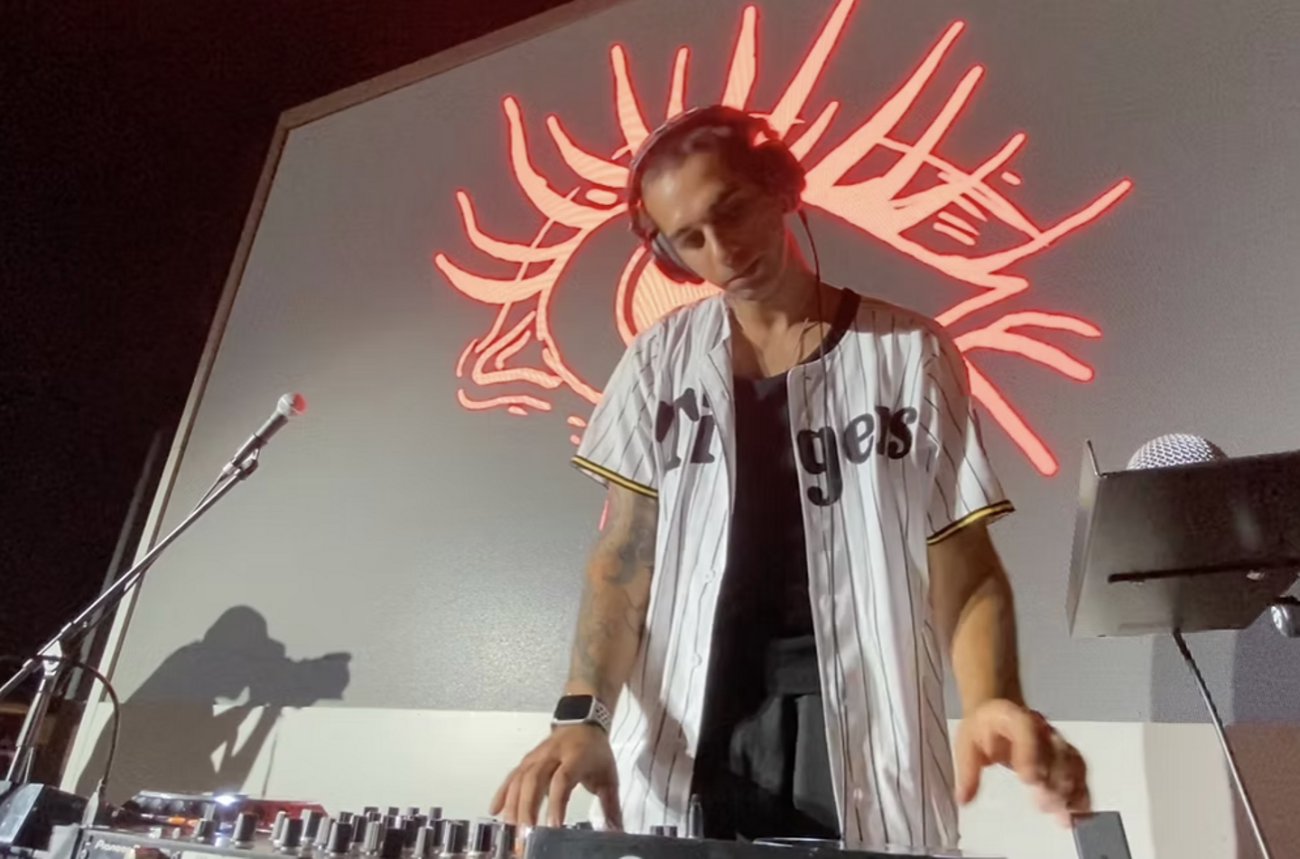 甲子園まで観戦に行ったと言う阪神タイガースのユニフォームを着てプレイするDJ Leonardo