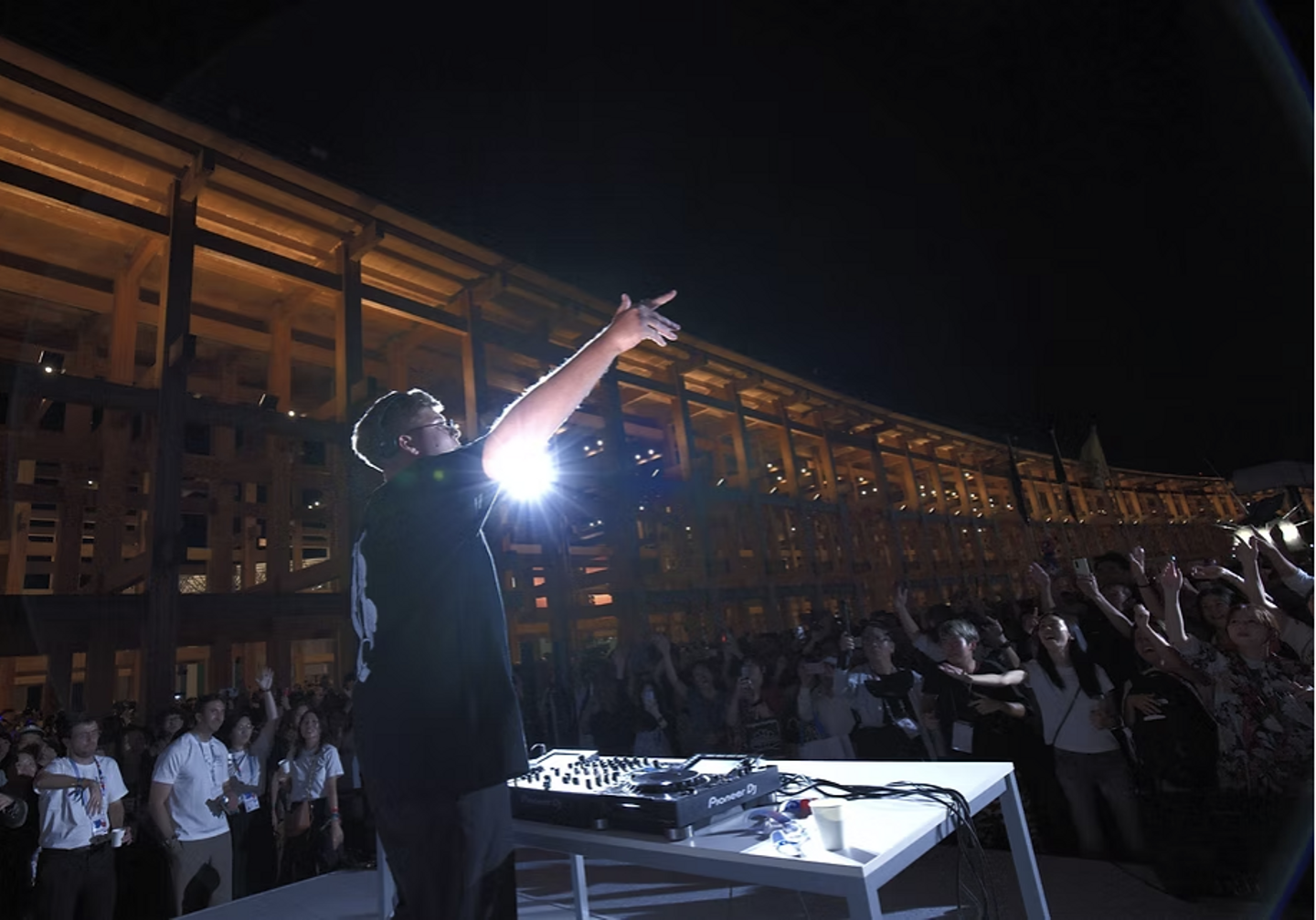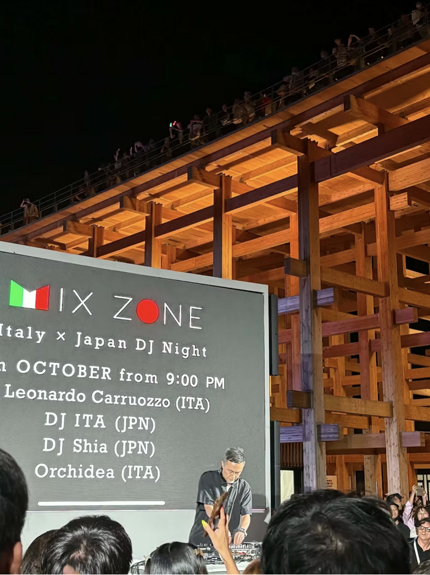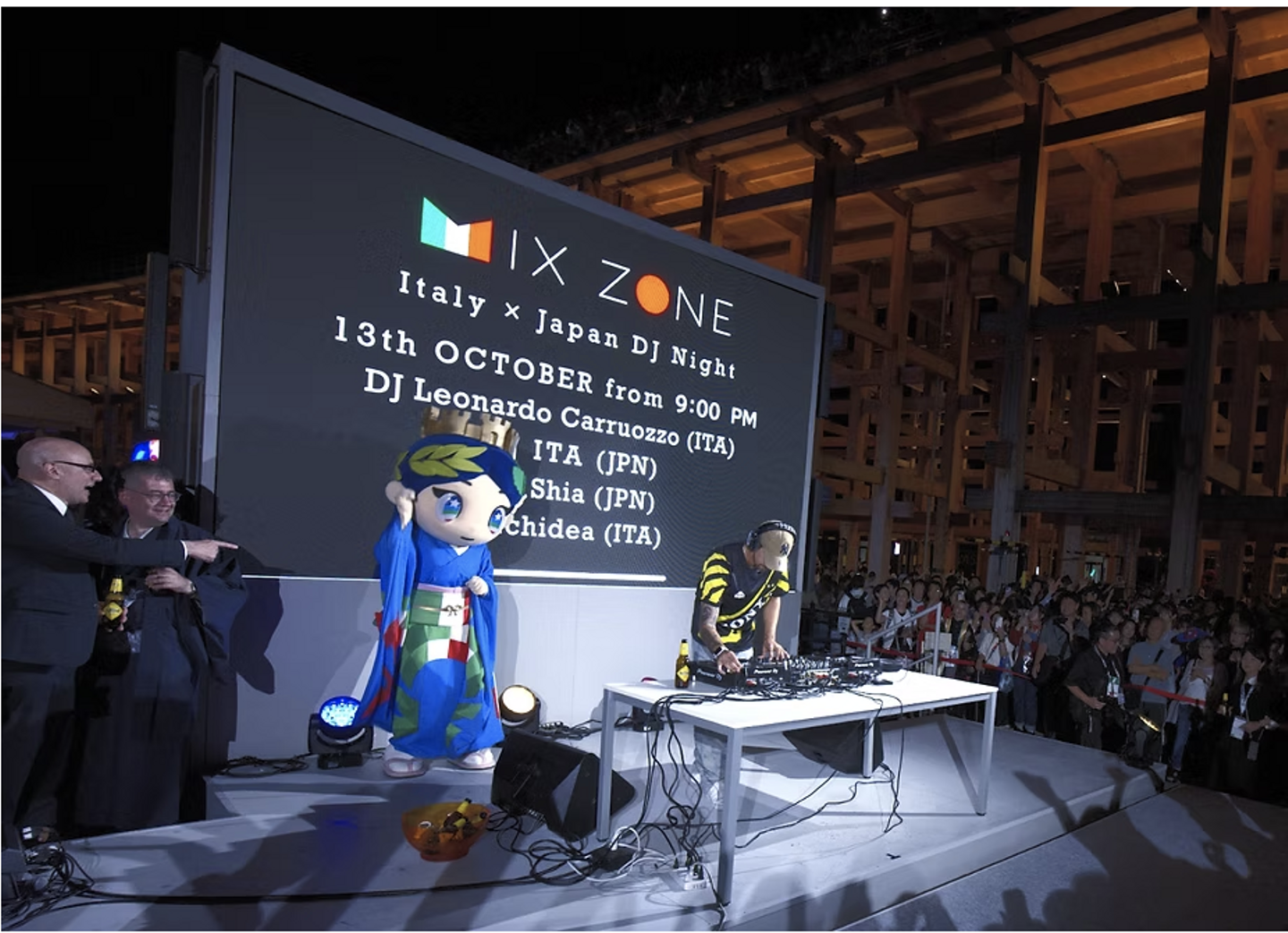 日本から出演したDJ BAMBOOも参戦し、Leonardoとともにダンスチューンを次々とプレイ。Kvsh, DEADLINE & GOLDZBROUGHが流れると、会場は一体感に包まれました。国境を越えたDJたちによるクロスオーバーサウンドは、イタリア館前の広場を唯一無二の音世界へと変貌させました。