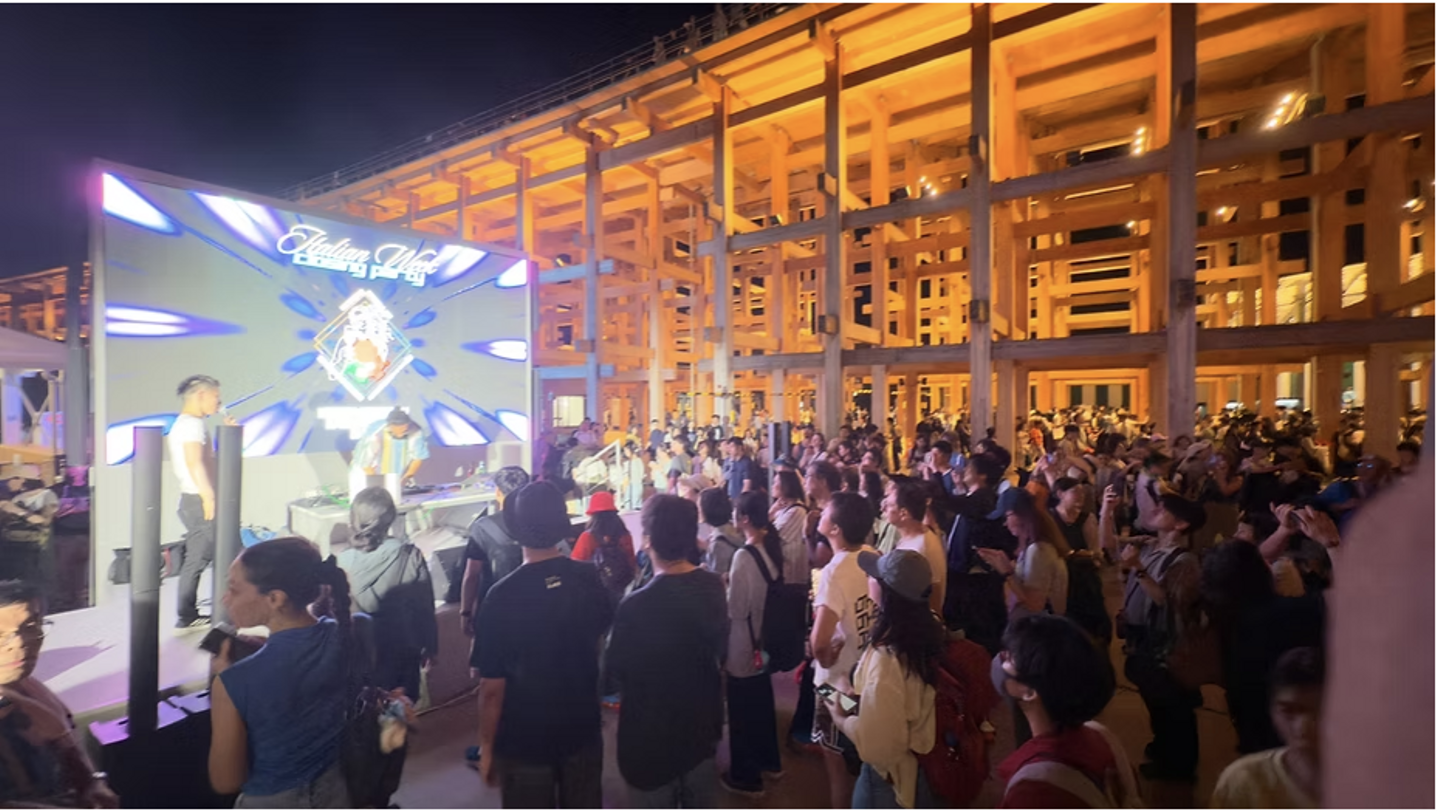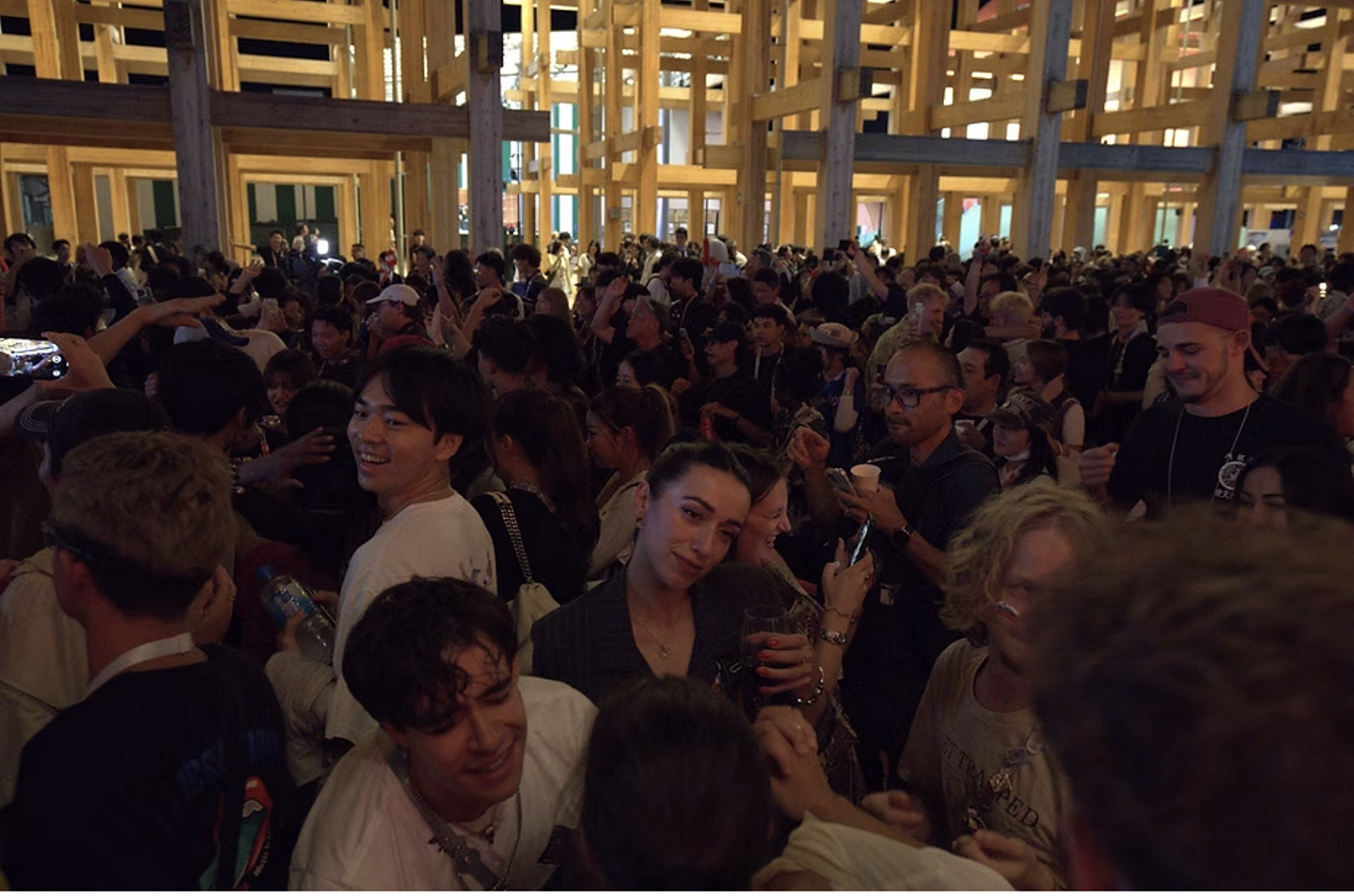 観客が一体となって盛り上がる光景は、まさに大阪・関西万博が掲げる「いのち輝く未来社会のデザイン」を、音楽で体現した瞬間と言えます。伝統工芸を背景にした建築空間と、現代的な音楽カルチャーが交差したこのイベントは、万博ならではの価値を示す貴重な機会となりました。