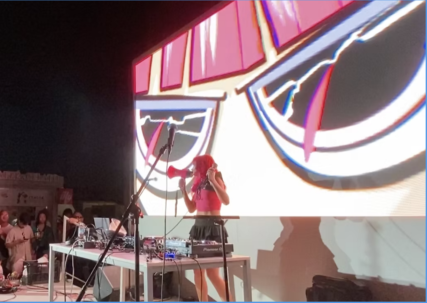 ピンクヘアをトレードマークとするソロシンガー・ギタリストで、この夜は自身の楽曲を中心に構成。パンクの精神とエレクトロポップの新しい潮流を融合させた、独自の“クラブ体験”を追求するステージで、観客は次第にその世界観へと引き寄せられていきます。