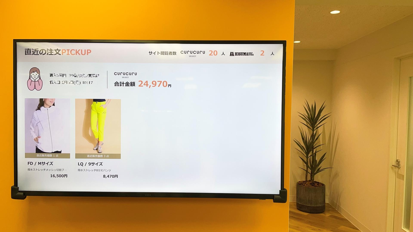例えば、エントランス近くのサイネージには、どんな商品が売れたのか・サイトの閲覧者数など具体的な情報が見れるようになっています!