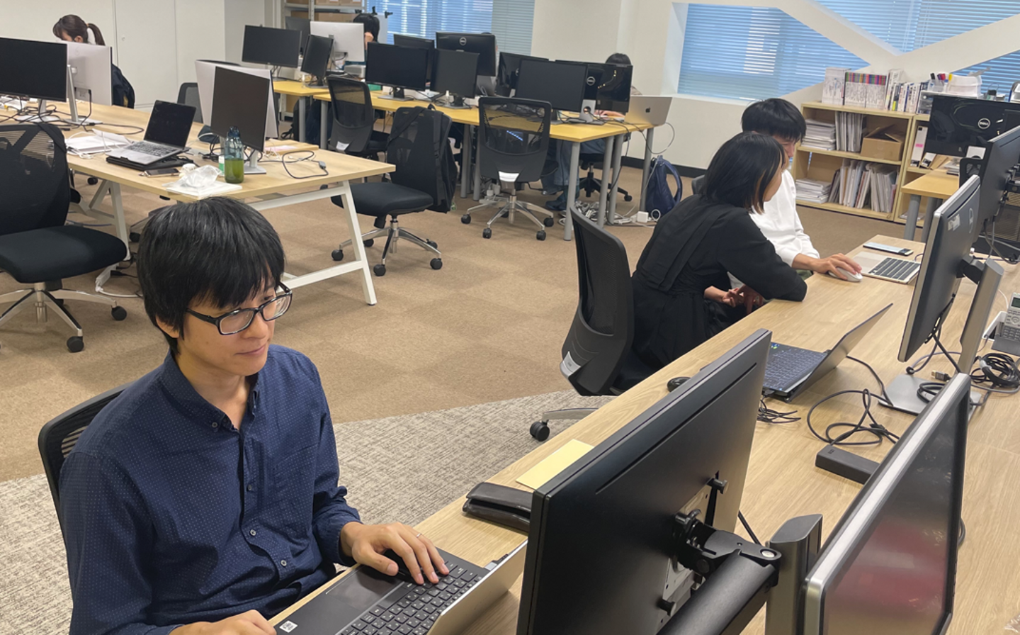 社員同士がコミュニケーションをとりながら仕事が出来るよう、移転を機に一部フリーアドレスを導入しました。