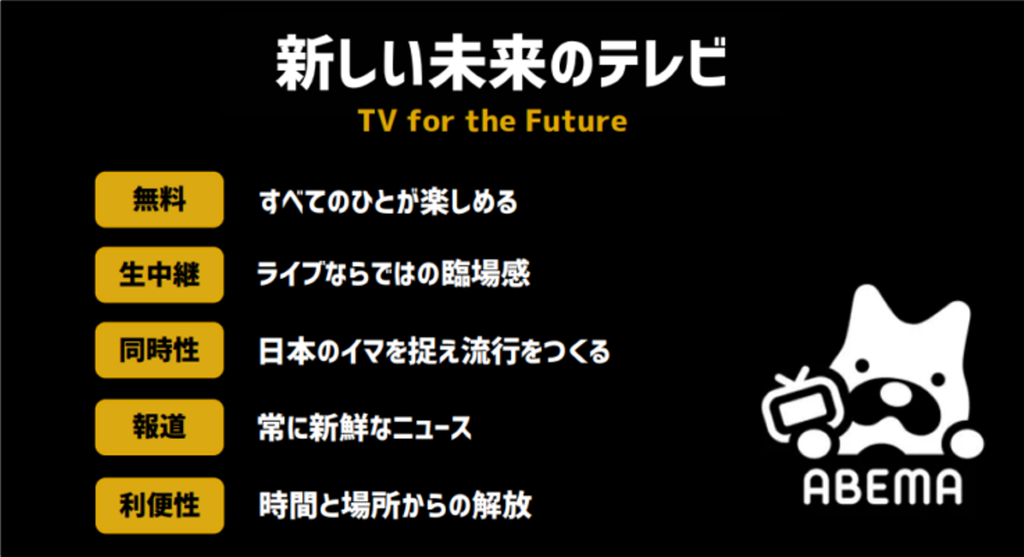 ▲ABEMAの掲げるコンセプト「新しい未来のテレビ」(AbemaTVの決算資料から引用)
