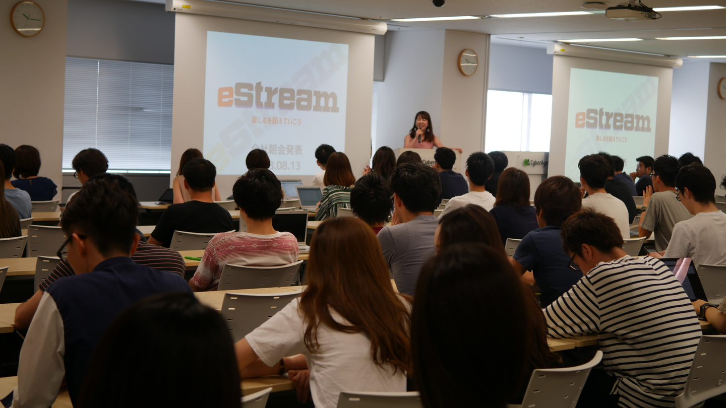 CyberZでは半年に1度、「ビジョンプレゼンテーション(ビジョンプレ)」という、短期と中期の振り返りと、戦略を共有し、未来の話をする時間を設けて、役員自ら発表をおこなう場があります。東京以外には仙台、名古屋の2拠点、海外ではアメリカ、韓国、台湾の3拠点にオフィスがあるので、距離が離れたメンバーのために、同時通訳・中継も行われます。自分の所属する部署だけでなく、会社全体の戦略や未来の話を聞くことにより、改めて一致団結出来る場になっています。今年も10月に実施予定です!