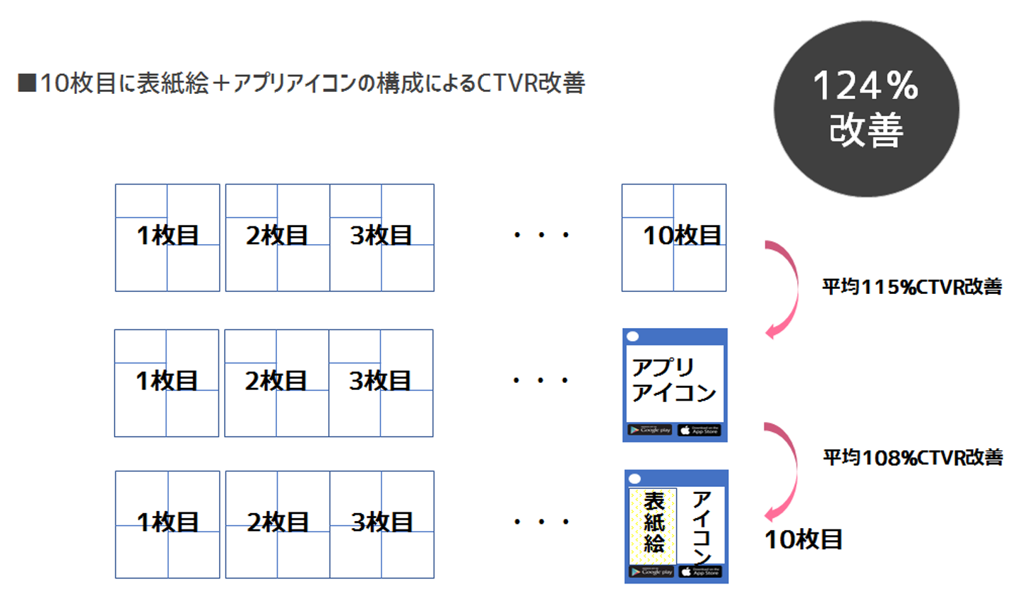 <10枚目に表紙絵+アプリアイコンでCTVR124%改善>