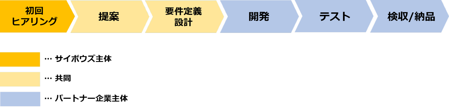 また、kintone で開発することが決まった後も、パートナー企業の要望により、対面開発や要件定義への同席も行います。kintone で実装する際のコツや注意点などアドバイスを行いながら、パートナー企業の SE さんと共同で進めていきます。大規模な案件や まだ kintone での要件定義に慣れていない パートナー企業の対面開発などが多いですね。