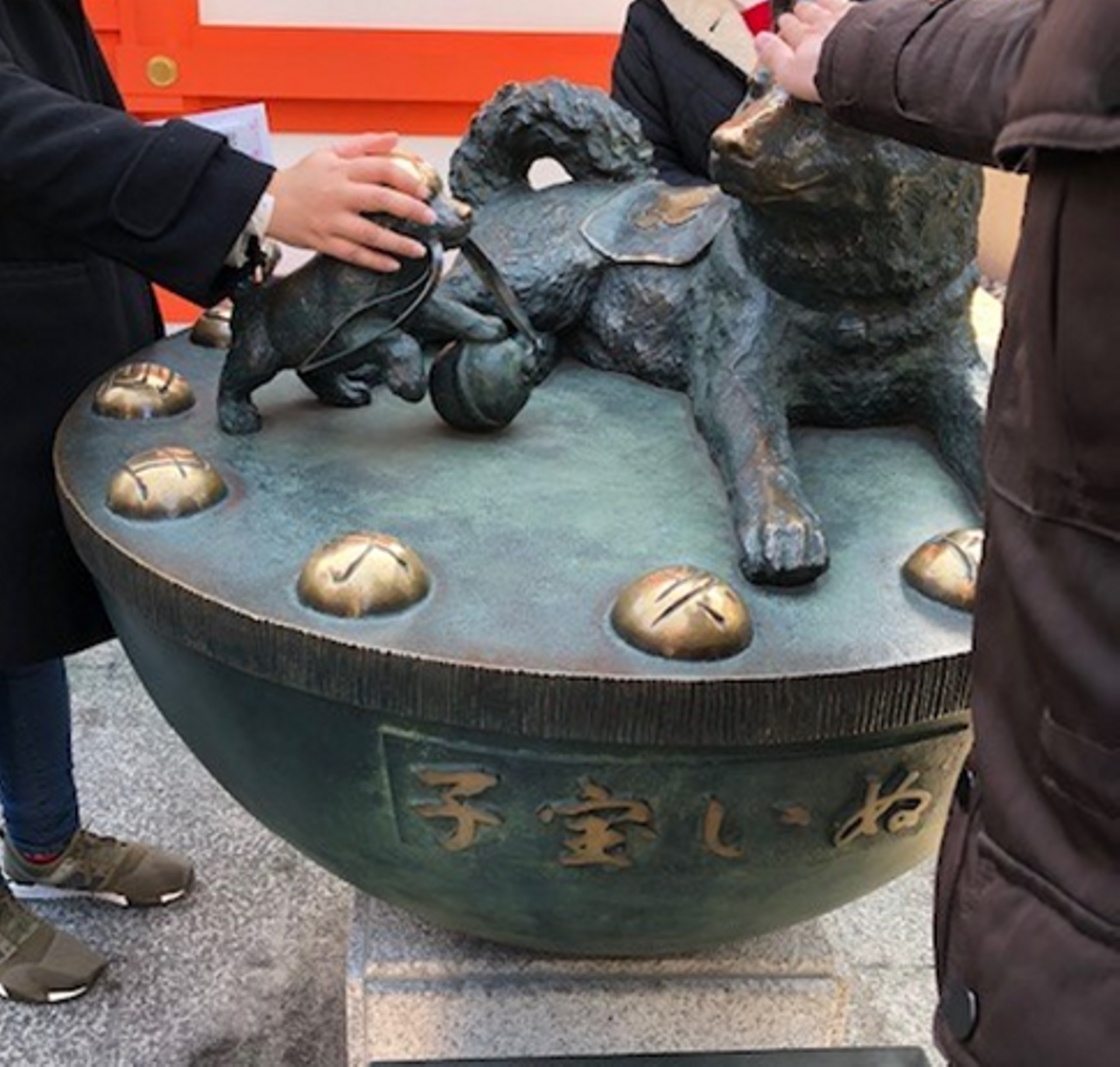 水天宮の「子宝いぬ」。子宝祈願や安産祈願で有名です。
