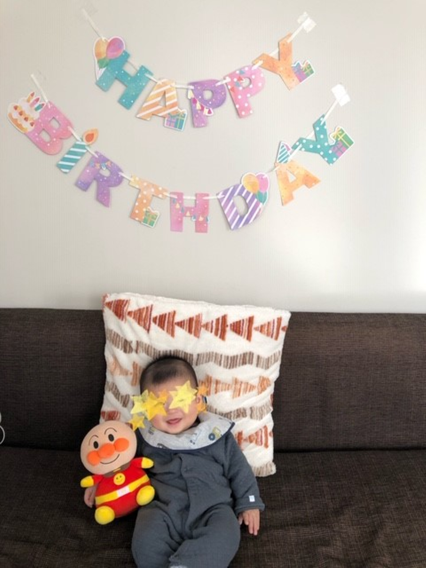 年末に6か月を迎えました。今は「ハーフバースデー」と言って、生後半年に写真館で写真撮ったり、お祝いしたりするのが普通のようです。我が家は100均で買った装飾を壁に貼ってスマホで写真を撮って終了。。。