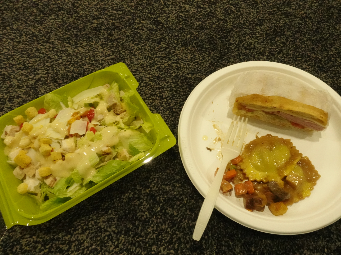 サラダとサンドイッチと、牛肉と野菜の炒め物(?)。この写真だとわかりにくいけど、めっちゃ量多い。サラダだけでお腹一杯になって残してしまったくらい。このボリューム感が無料ってすごいな、都内でこのランチ買ったら1,000円はすると思う。