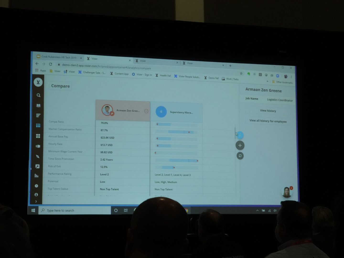 サービスのデモ画面を見せてくれるセッションもありました。これはVISIERというピープルアナリティクスのサービスを提供している会社です。