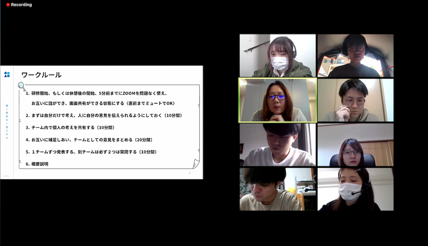 回線が途切れてしまうんじゃないかとかグループディスカッションはできないんじゃないかといった事前に想定したトラブルに見舞われることなく、スムーズに研修を進めることができました。