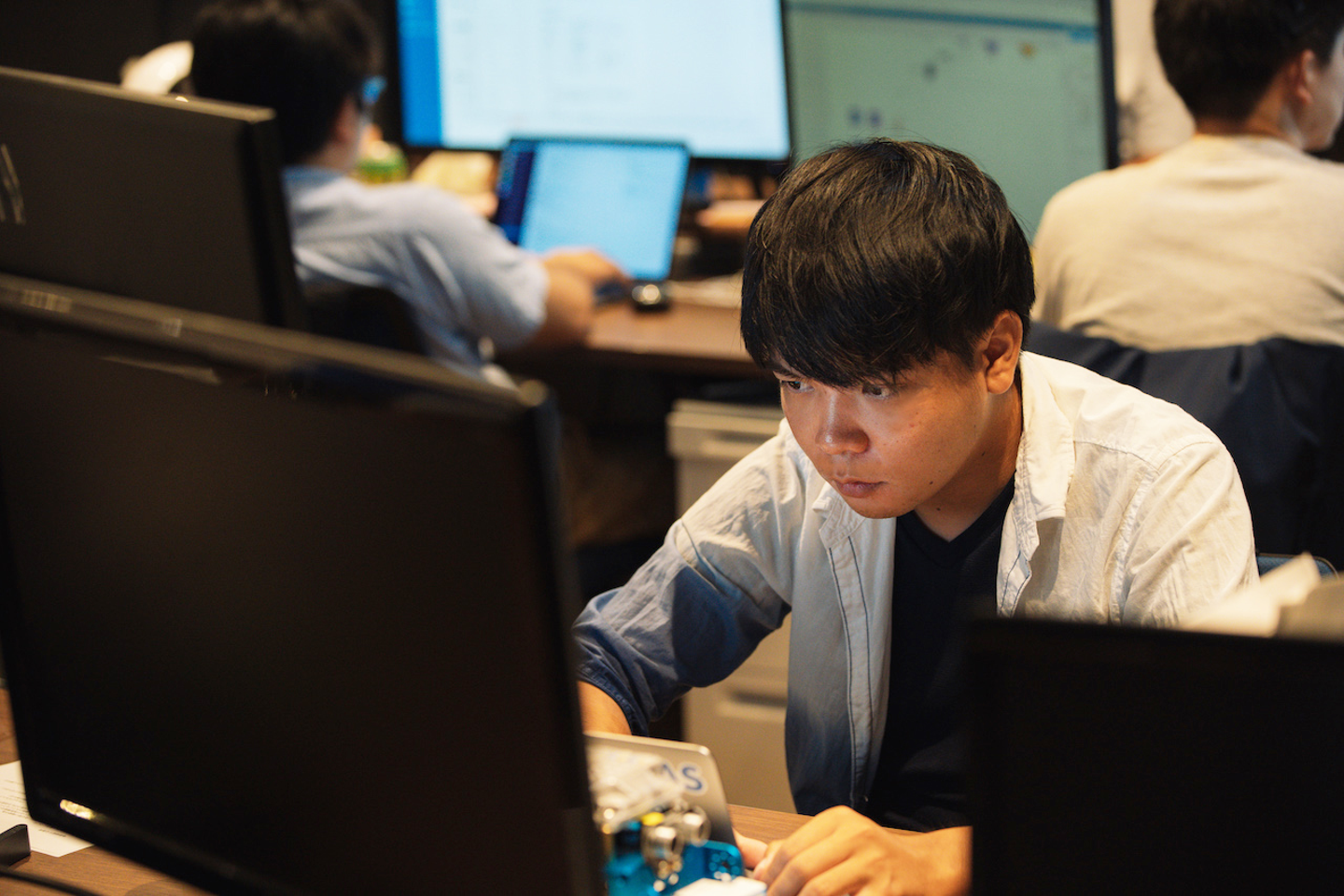 僕は入社当時から開発の所属です。当時メンターでついてくれてた先輩がいて、弟子入りをしたような感じですね。いやぁ・・・しごかれました(笑)今思えば、あの頃が一番大変だった気がしますね。そのメンターの先輩は、他部署の方からすればとても人当たりの良い人だったんですが、自分の専門領域になると変わるというか、プロフェッショナルな人だったんです。