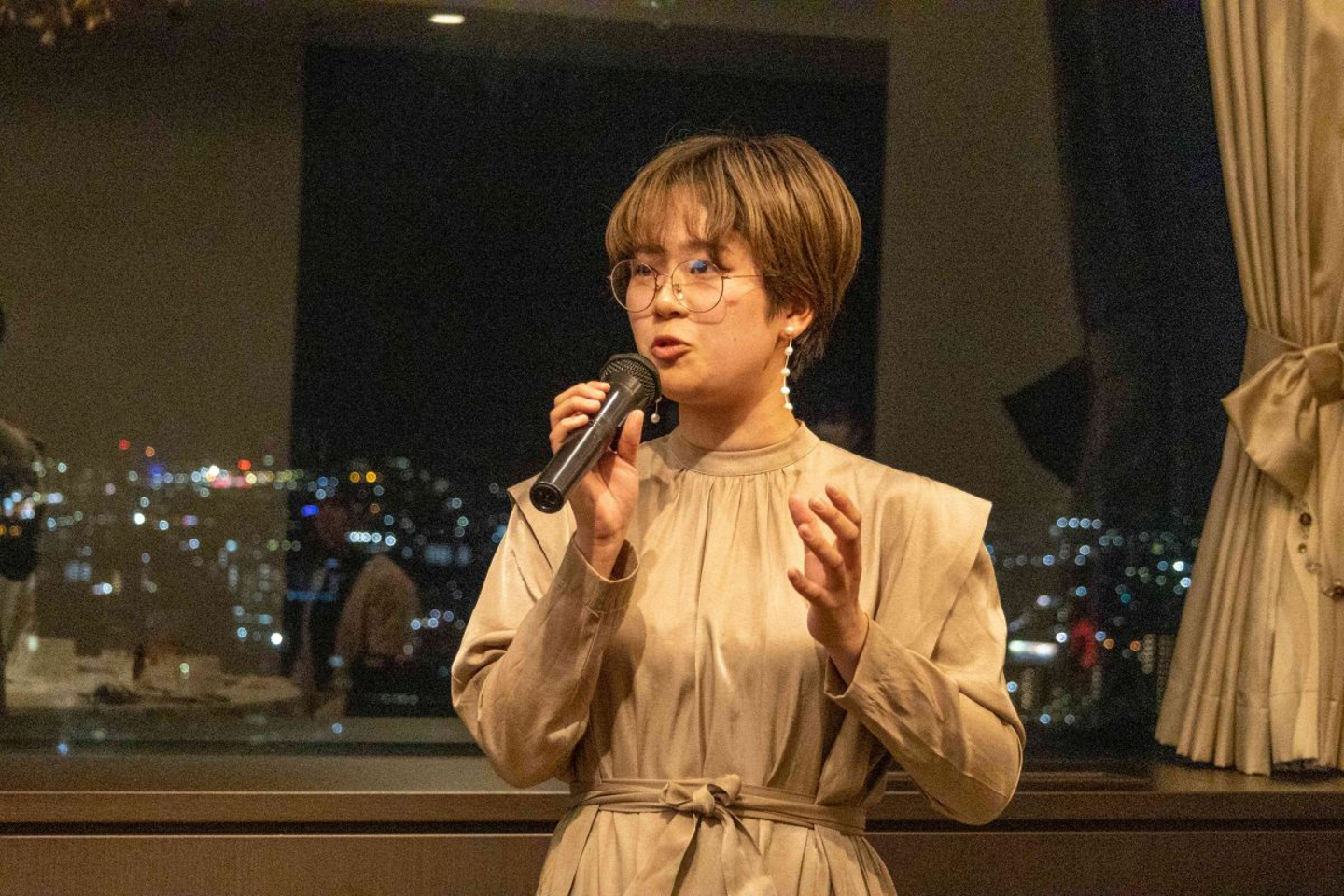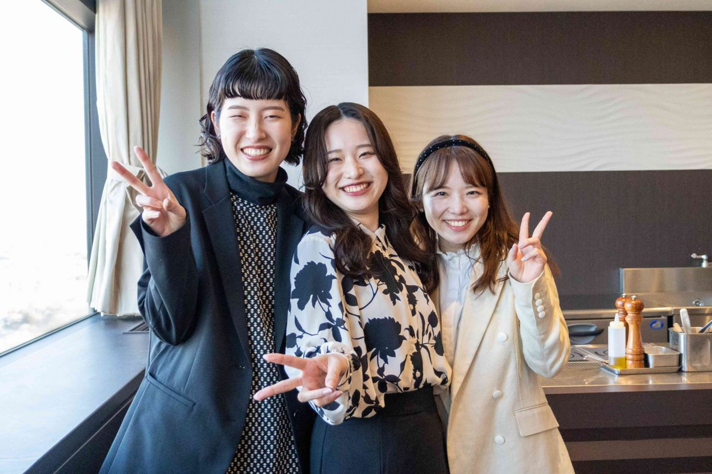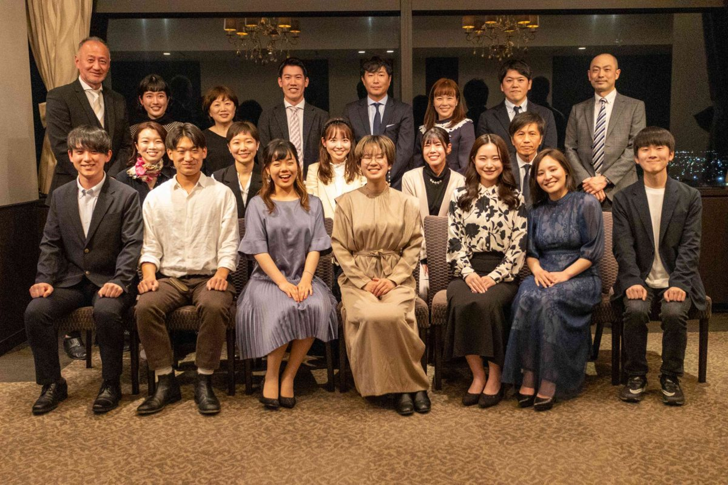 昨年新卒で入社し、2年目社員となった、あかねさん、みくさんも出席。先ほどのジャージとは打って変わって、みんなエレガントな装いで登場しました!