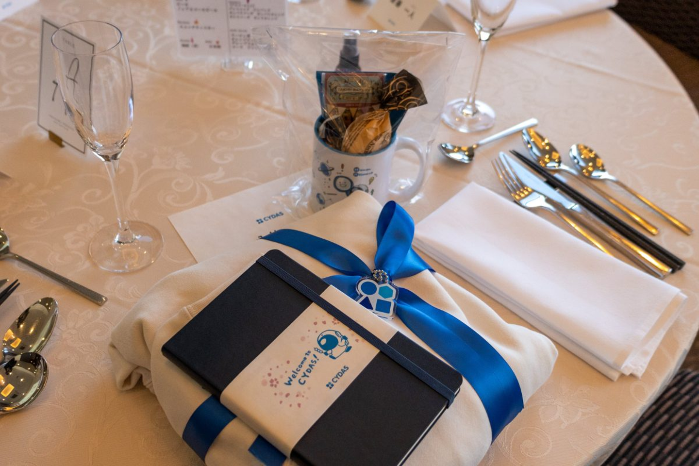 会場のテーブルには、ブランド戦略本部のメンバーが用意してくれたサイダスグッズが置かれていました。こうして目にみえる形でも歓迎ムードを作り出してくれるのもサイダスならでは。