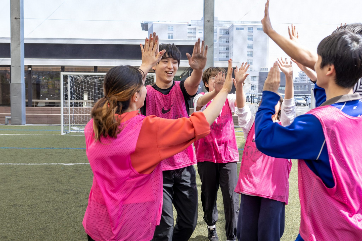 終了の合図のホイッスルが鳴った瞬間、みんな自ずと集まりハイタッチを交わしました。