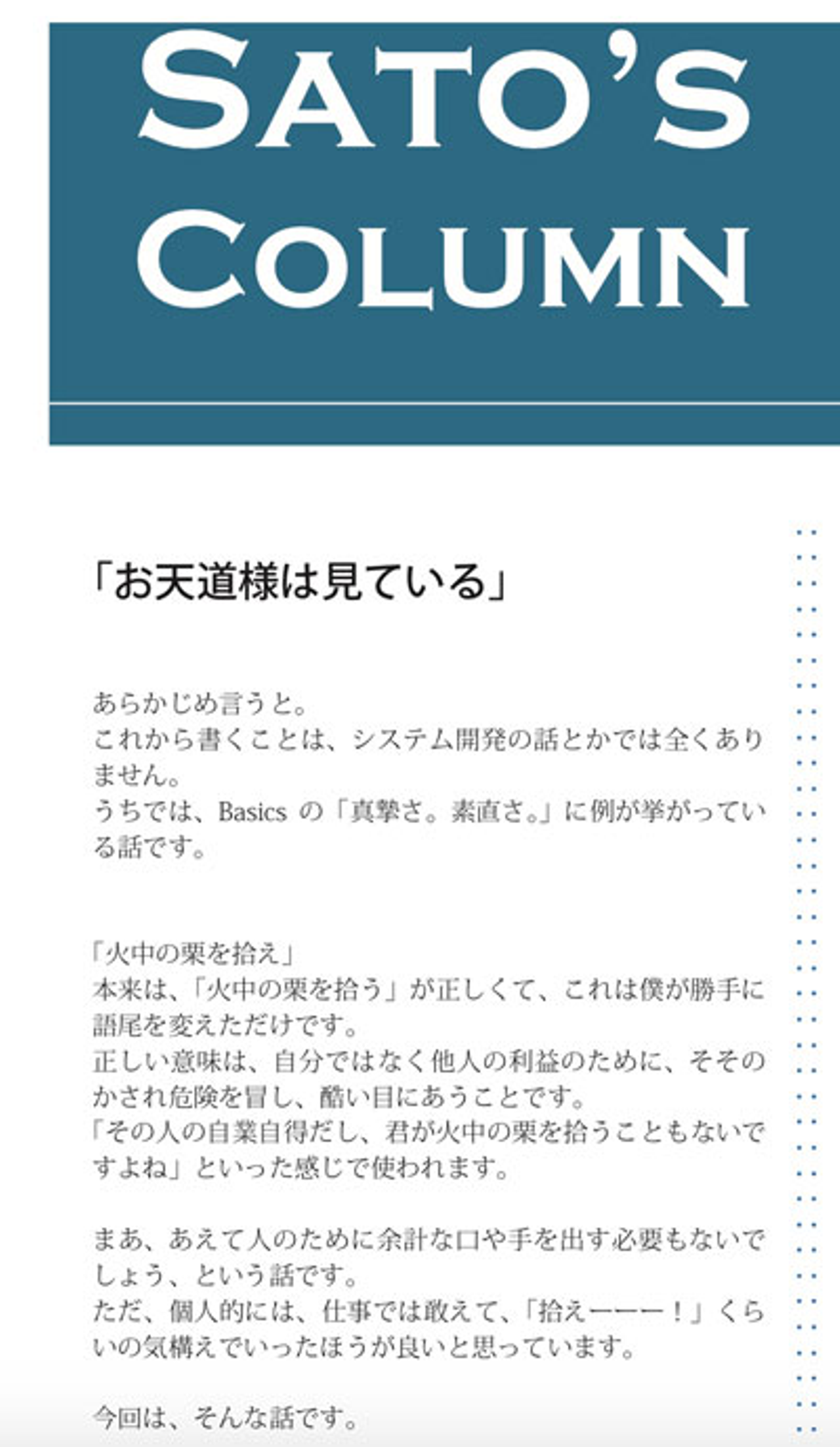 最後のページまで進んで、人事の佐藤さんが書いた記事を読んだ。