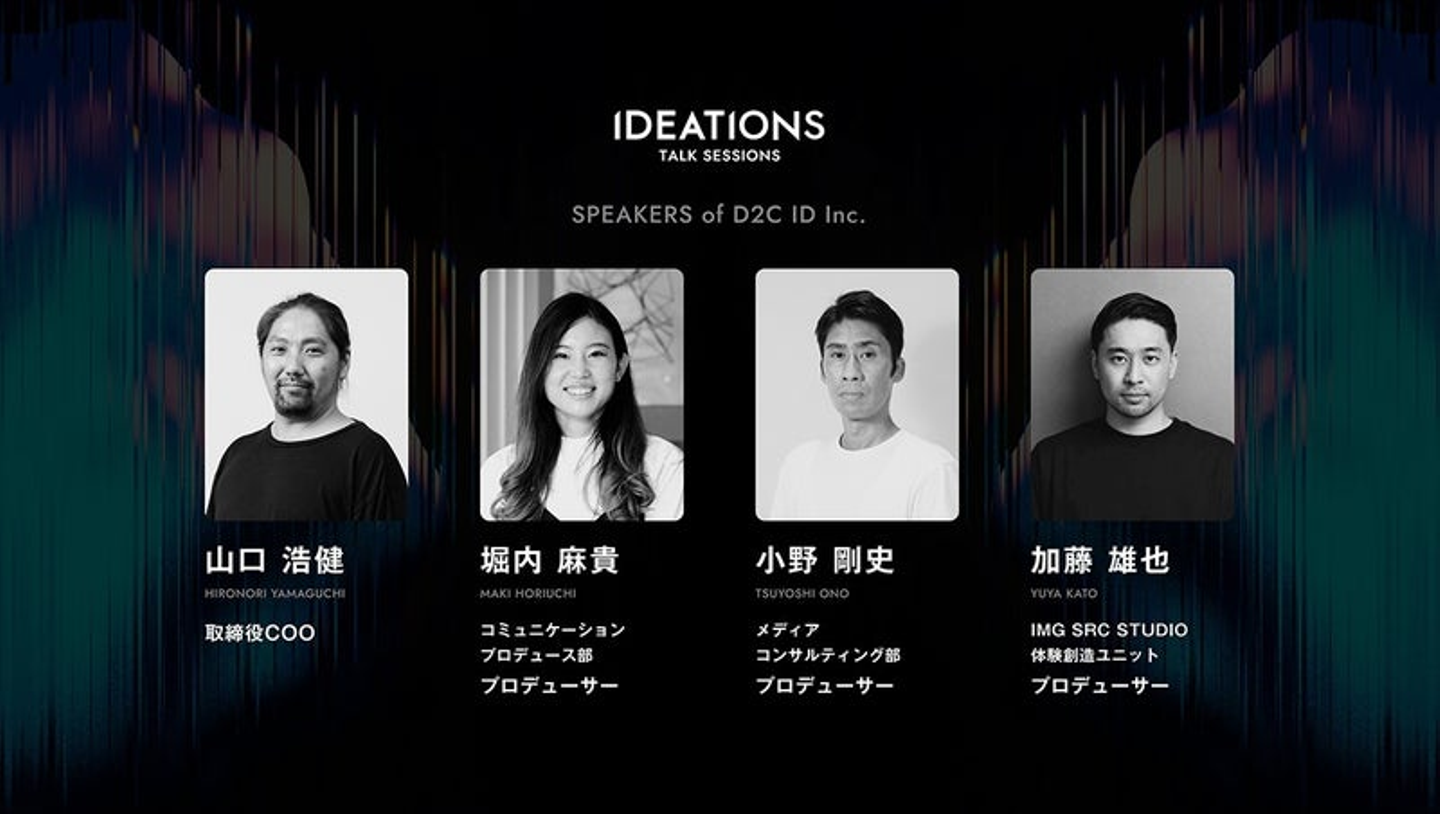 先日開催されたイベント『IDEATIONS Vol.1』では、2022年10月に始動したばかりの新会社D2C IDについてご紹介させていただくトークセッションをおこないました。テーマは「マーケティング×クリエイティブで人も社会も動かしていく未来とは」、D2C dotとIMG SRCが合併し誕生したD2C IDについて熱い視線が注がれるなか、公でははじめてのプレゼンテーションの機会となりました。本記事ではその一部を抜粋しご紹介させていただきます。