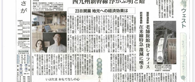 嬉野温泉ラボの様子が9月18日付朝日新聞の地方面に掲載