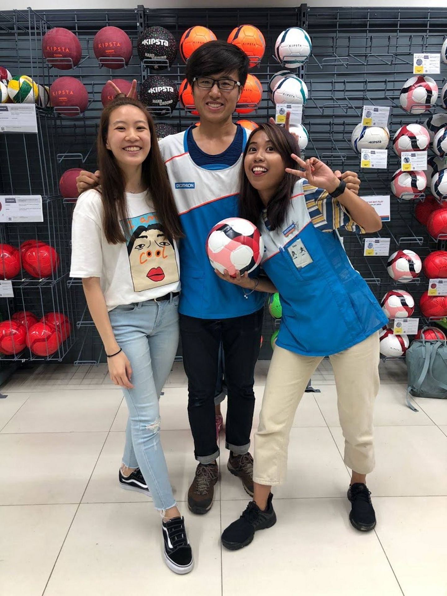 デカトロンのストアの理解を高めること、そして日本でストアをオープンする上でどの部分をシンガポールから学び、日本の文化を踏まえて改良・ローカライズしていかなければいけないかをデカトロン・ジャパンのメンバーと共有すべく、デカトロン・シンガポールにて海外研修を受けてきました。現地では店舗にて現地スタッフと共に働いていました。テニスが自分の大好きなスポーツであるため、主にラケットスポーツ部門で働かせていただきました。