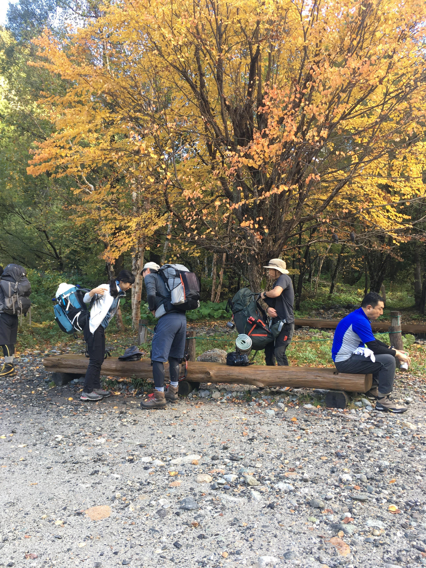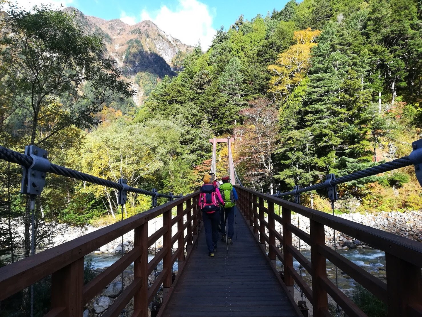 Next day early morning we started our hike to Karasawa Hut, a not very demanding route with a good amount of beautiful spots. Weather was perfect, leaves in all colors from green to red, and the curry rice at Karasawa Hut was delicious.