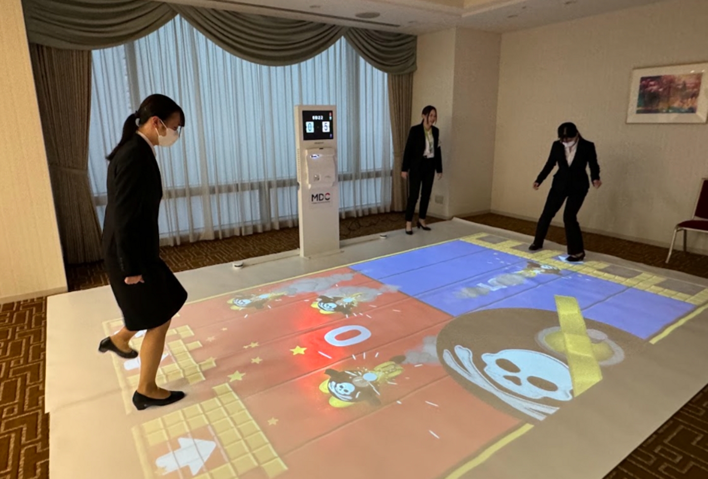 帰りには、AR式室内運動プラットフォーム「DIDIM」を体験しました。 これは、弊社の放課後等デイサービス「ハッピーテラス」で導入している、視覚的にも聴覚的にも楽しみながら室内運動ができるものです。