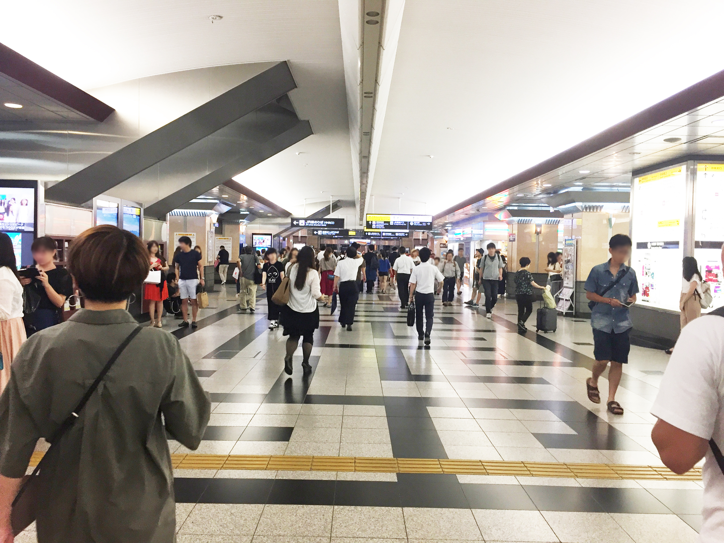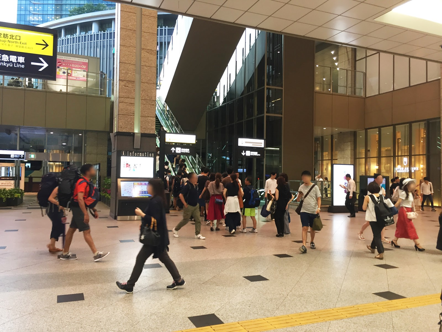 まずは大阪駅を降りて右に曲がります。北側のノースゲートビル(ルクアのあるビル)方面を目指します。