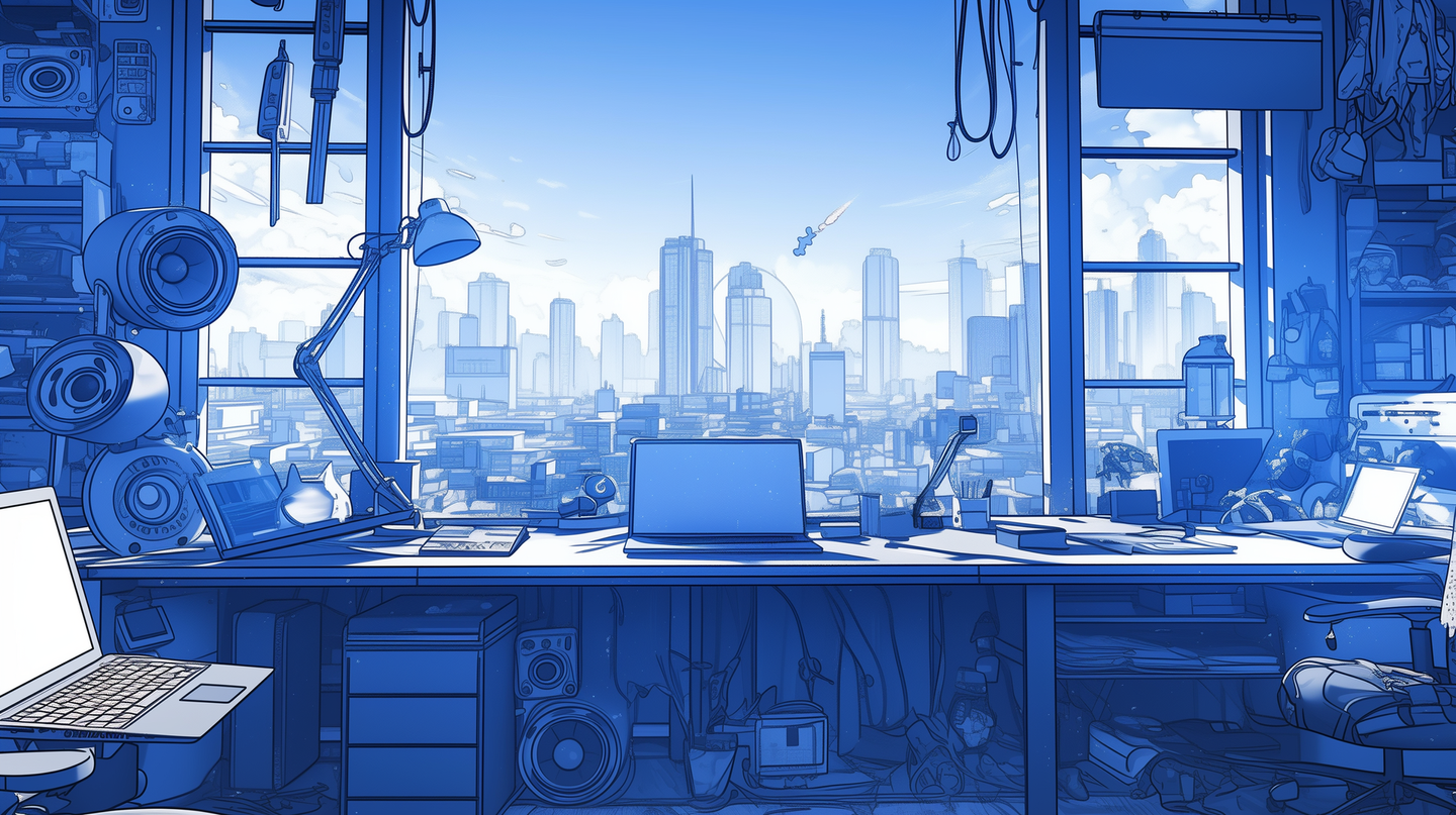 とりあえず、都会の生活感のある部屋で中心にノートパソコンという感じのイラストです。