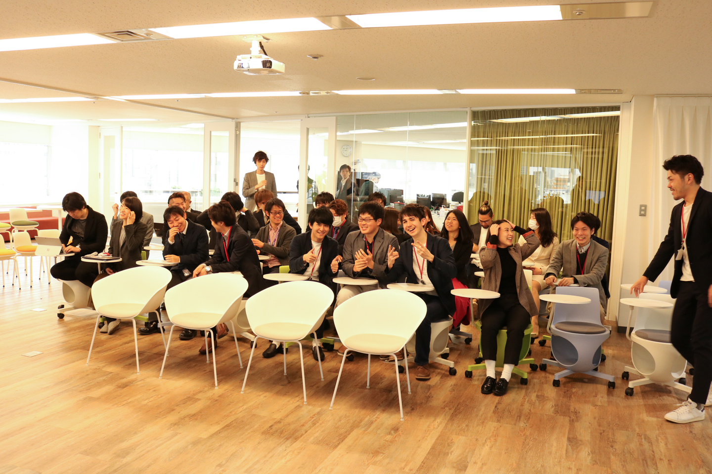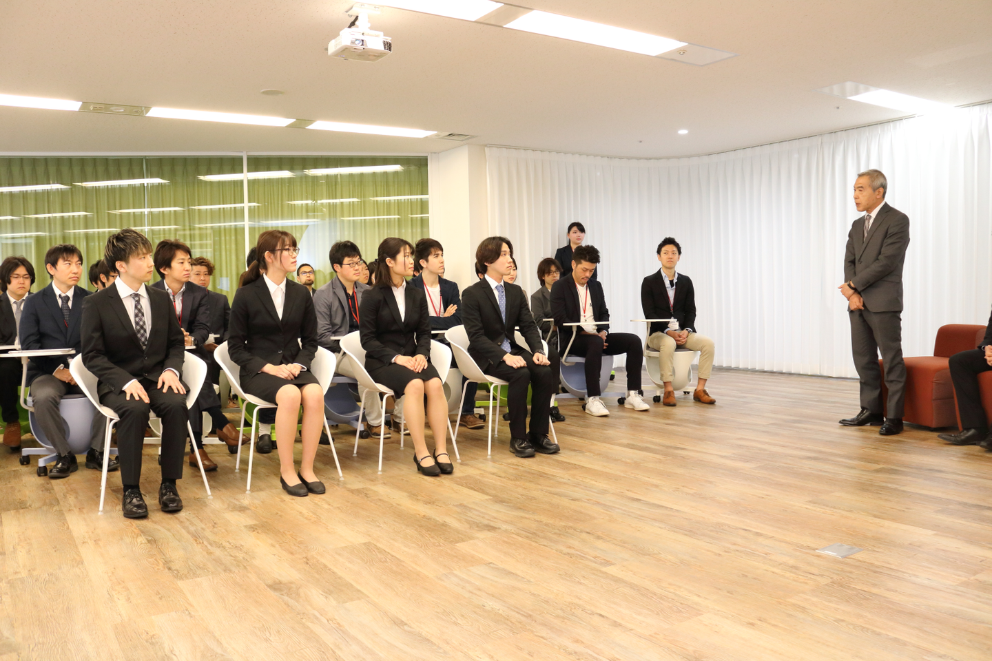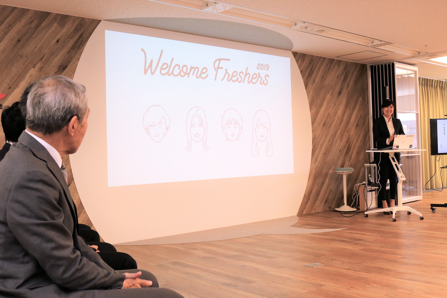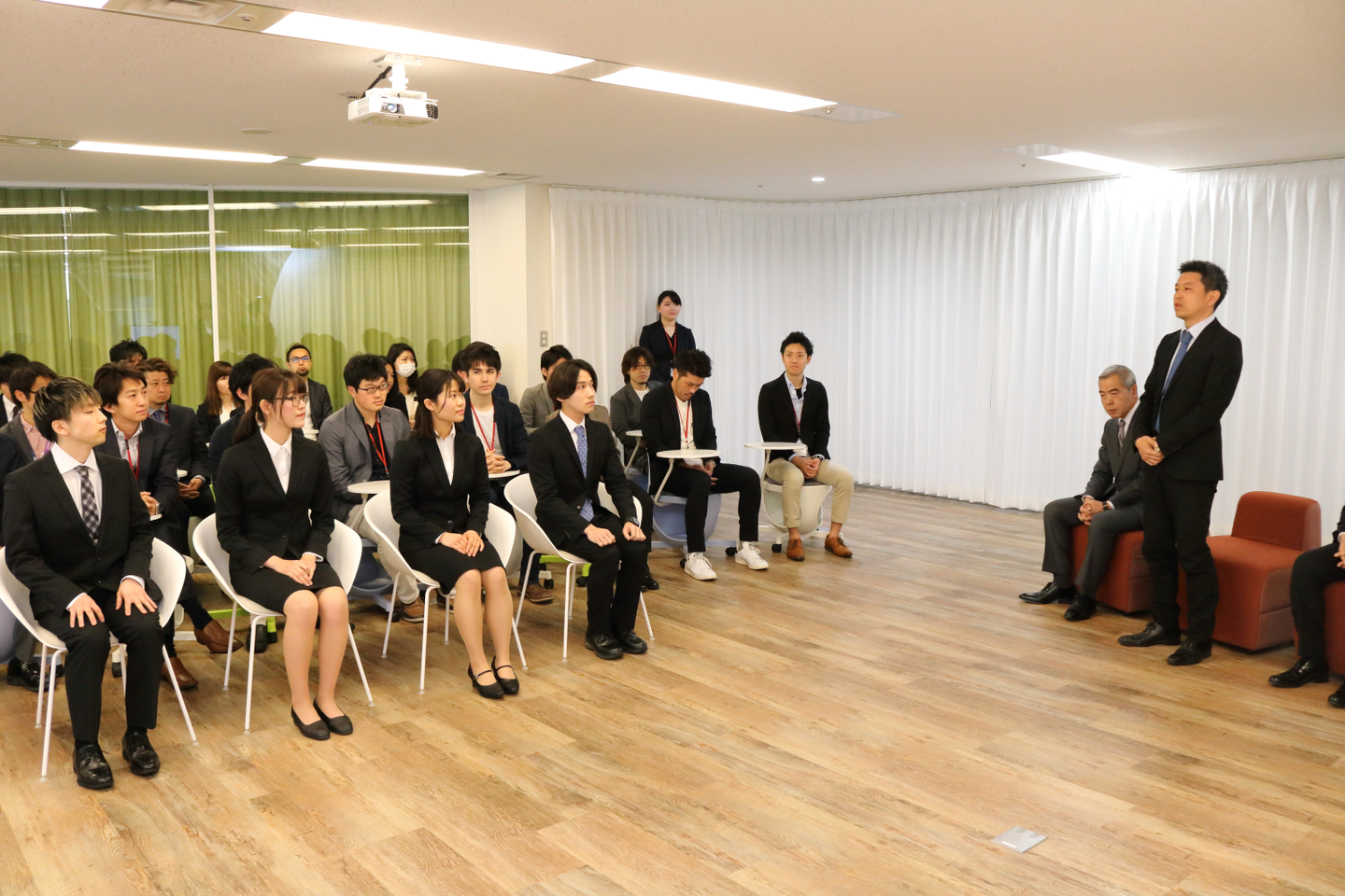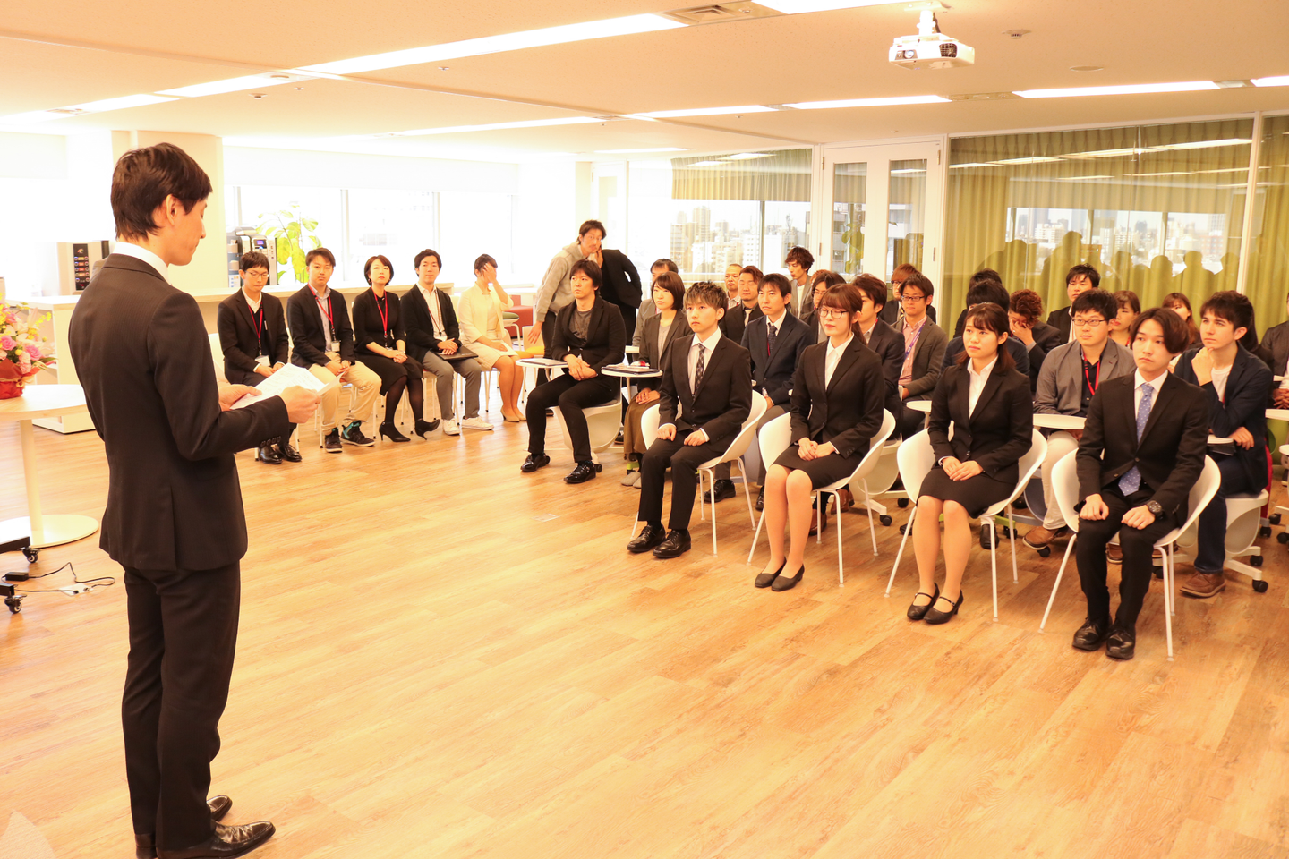 今回、新たに担当させていただくことになり、入社式をもっとオープンな形でやりたい!という想いで、社員にも参加のお誘いをしたところ、任意参加にも関わらず、多くの社員が参加してくれました。
