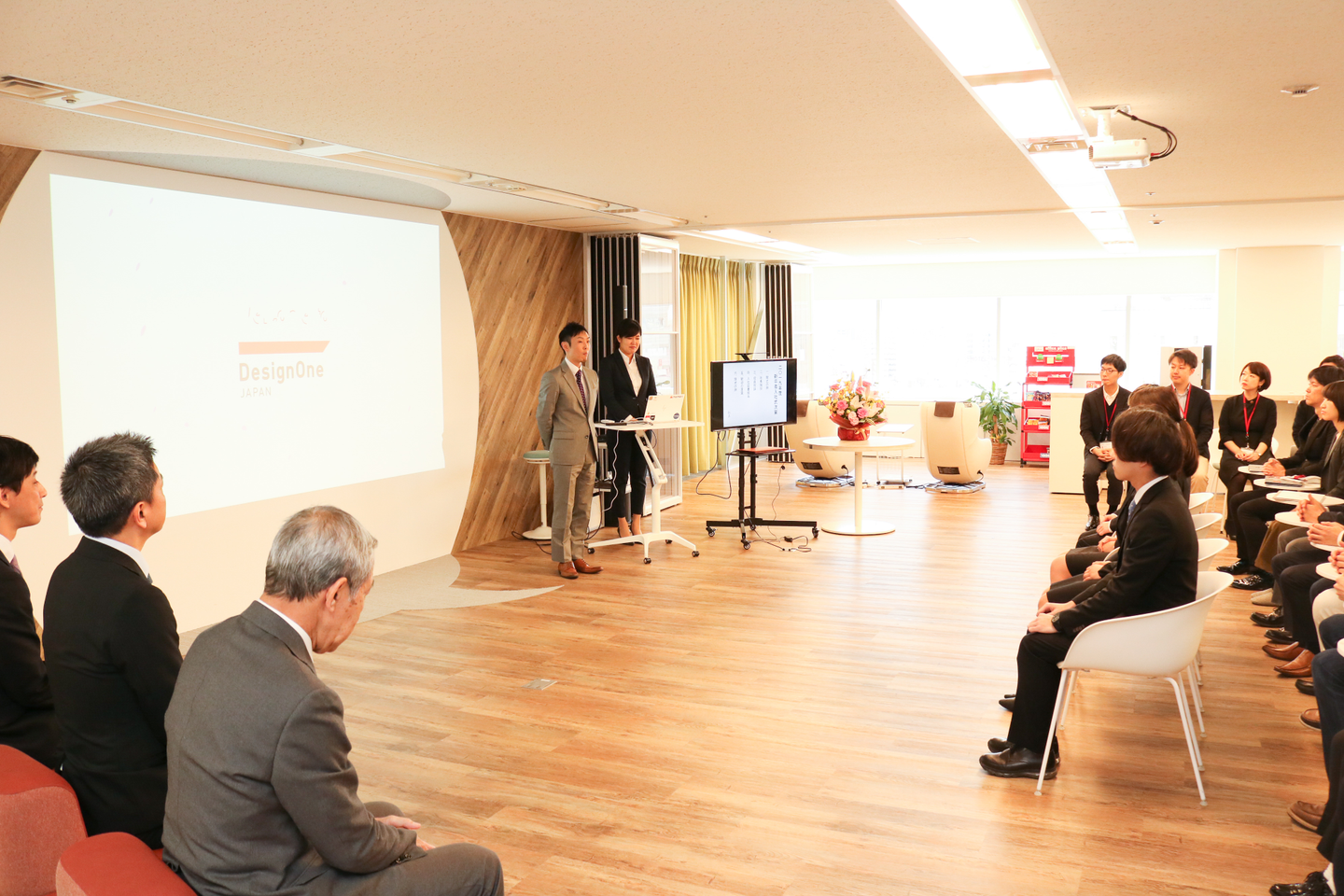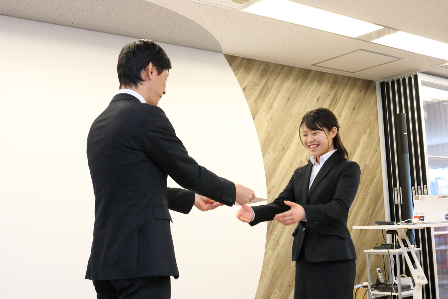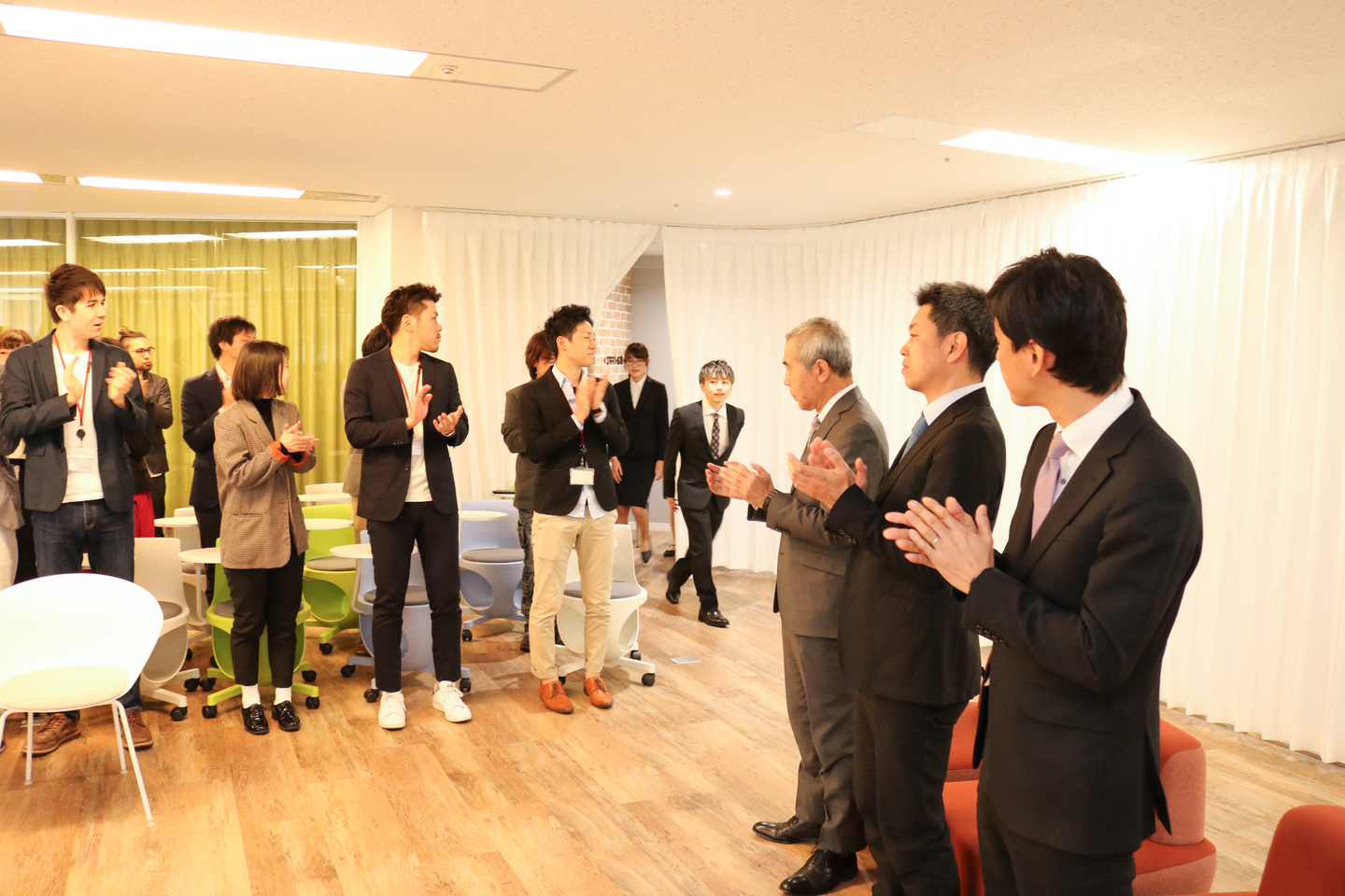 普段は、私服 勤務の当社ですが、式典ということで、社員もジャケット着用での参加をお願いしました。