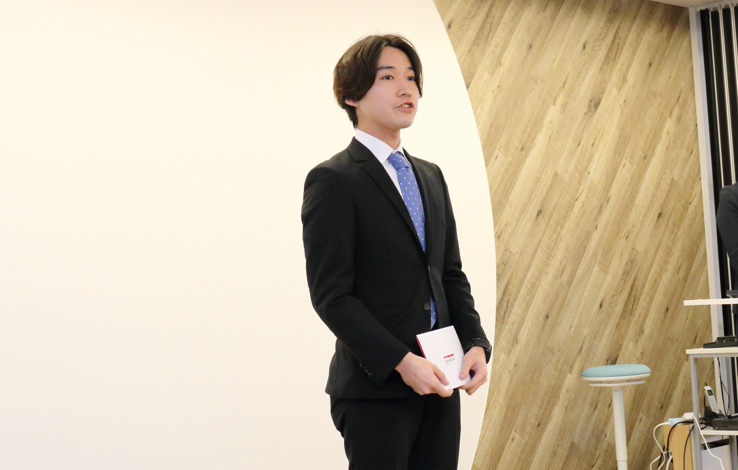4名を代表して力強く決意表明!堂々とした発表姿に先輩社員も良い刺激をもらいました。