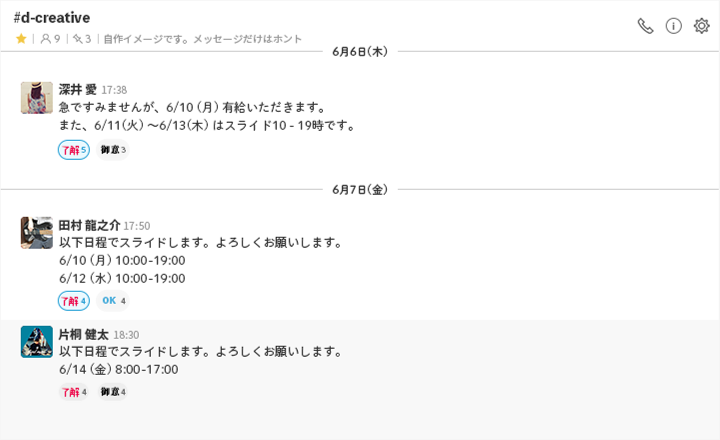 業務に関することだけでなく、最近あった出来事や、職場での気づきなどを書いている社員もいます。