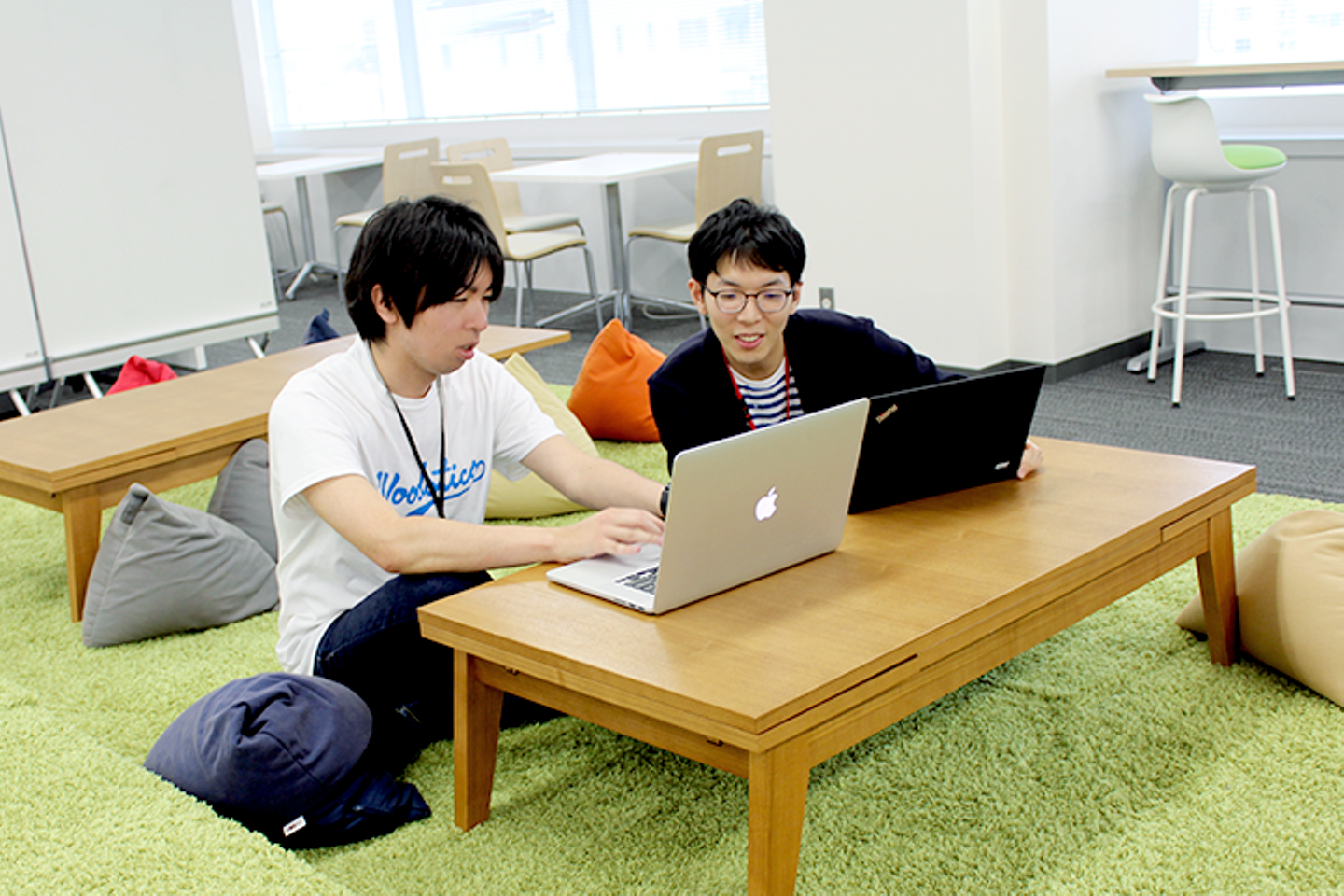 わたしは、このお座敷スペースのような、通称=しばふゾーンがリラックスできるので好きで、よくここに招集する癖があります。単に自席から近いってだけのことなんですけどねw