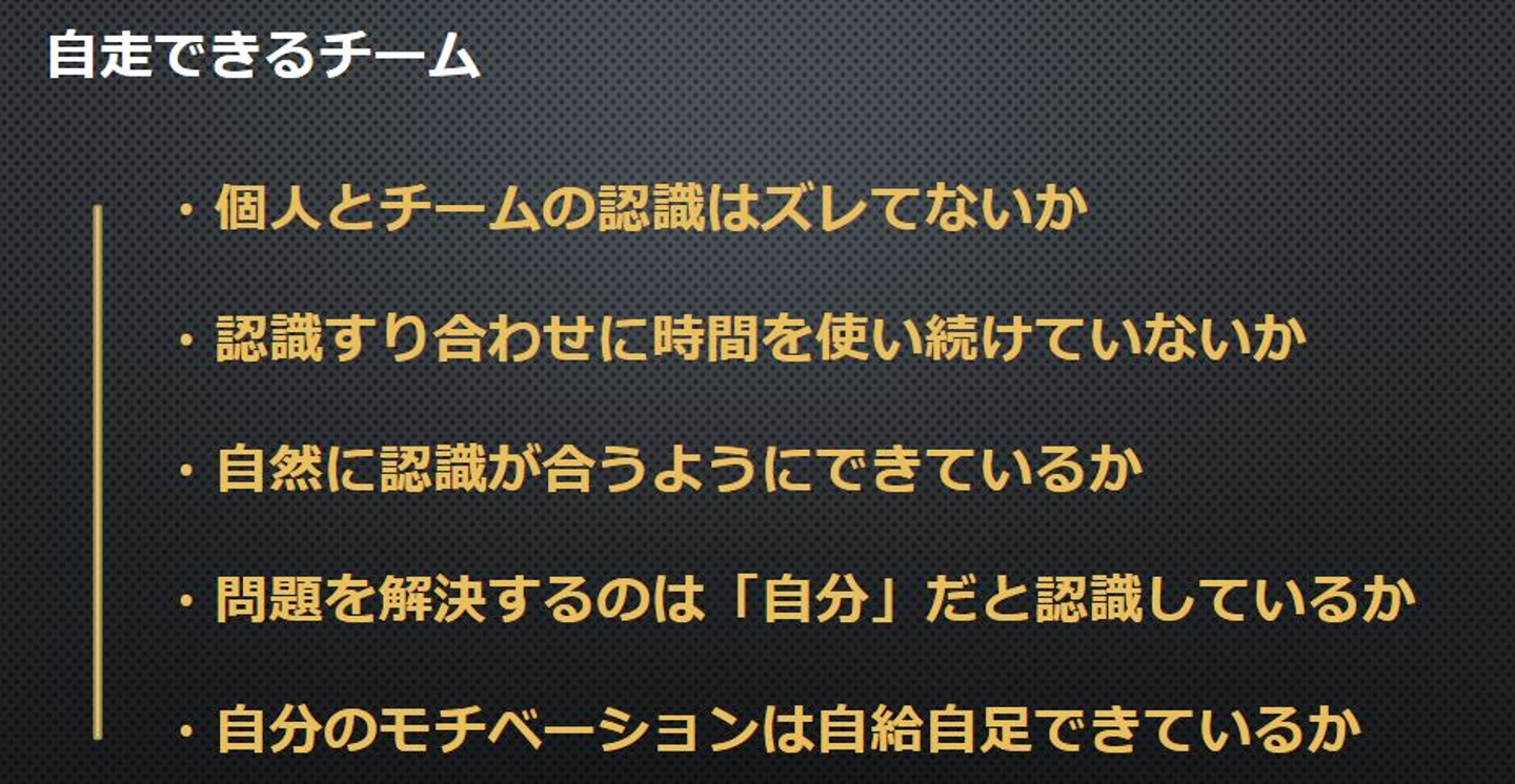 いま抱えている問題やトライしていることを共有することで、他メンバーとの認識の差を無くしていくことが目的ですが、それ以上に、もし危ない道を走っていたら、他メンバーが素早く察知することができるので、適切にフォローできることが大きいです。