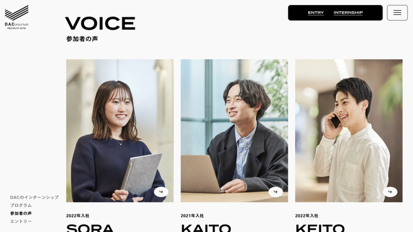 色々と会社のことを調べた時、直クライアント案件が8割以上であることから制作において領域を広く携われそうだなと思い興味がより沸きました。
