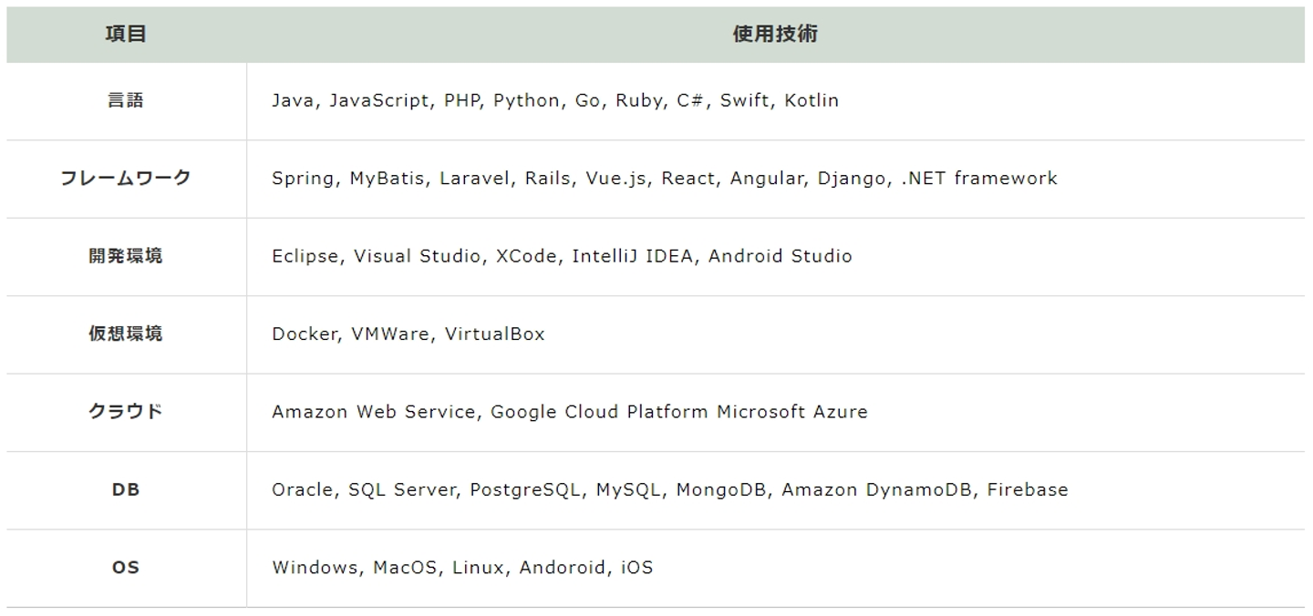 Web・オープン系開発などの分野が多くお取引があり、要件定義~プログラミング・テストまで、幅広い業務を行い、お客様の開発支援をしています。