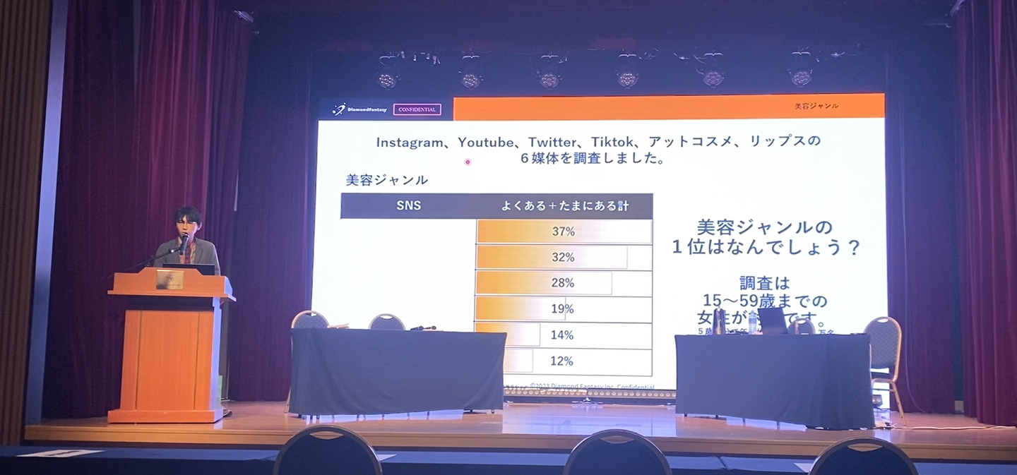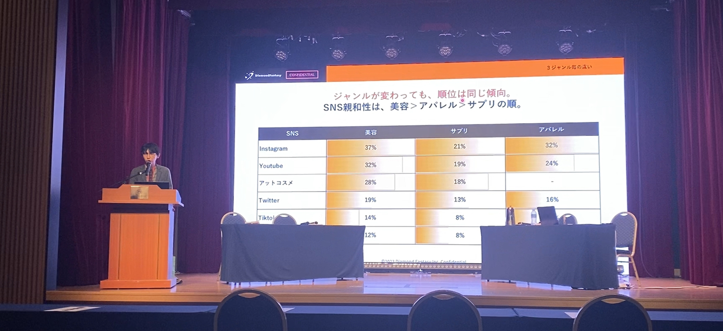 小林:年代別にどのSNSから購入が発生しているか、また購入検討している際に調べる媒体としてはどんな違いがあるか、 実際にどんなインフルエンサーさんの投稿でどんな商品を購入したか、までアンケートデータを基にお話ししました。